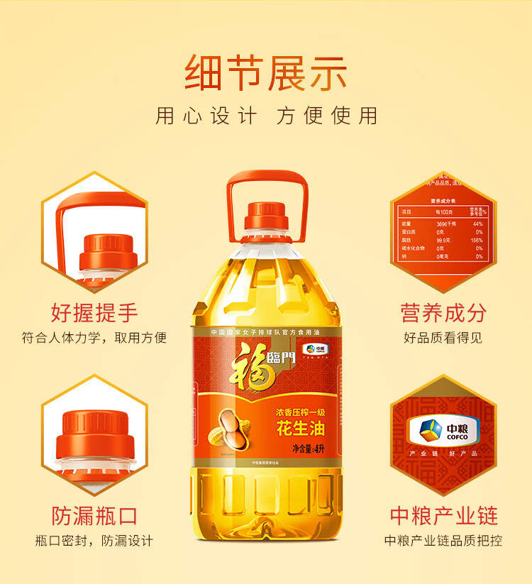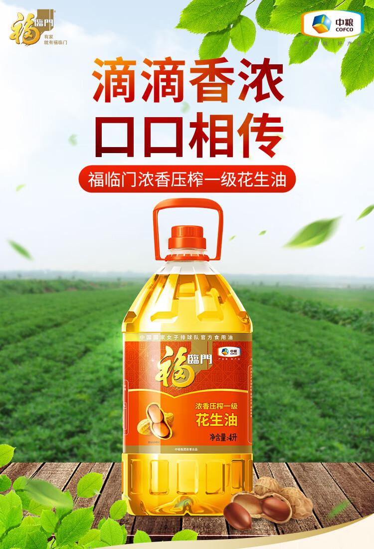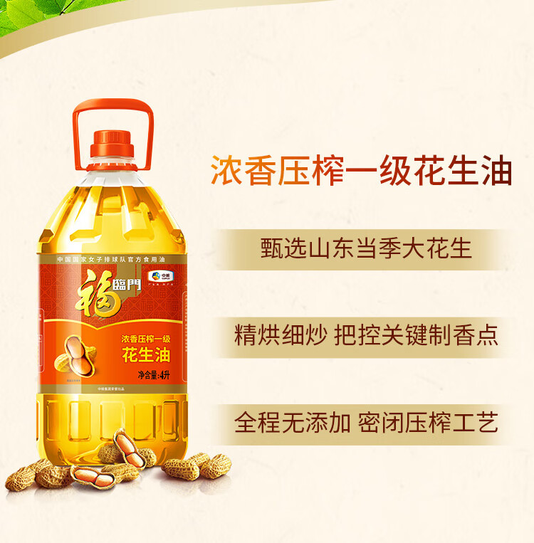 商品名称: 福临门 优选花生油4L 花生油 中粮 福临门优选花生油4L 4L