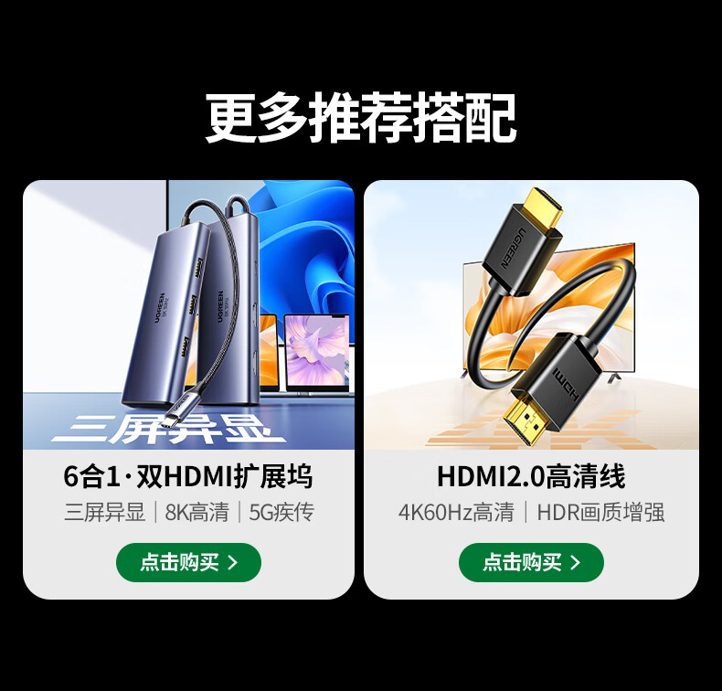 电脑、办公  > 外设产品  > 扩展坞  >  绿联/UGREEN  >  绿联/UGREEN CM478 15495 扩展坞转HDMI拓展坞投屏接口转换器雷电4转接头USB 适用苹果MacBook华为笔记本电脑iPad手机 CM478 15495
