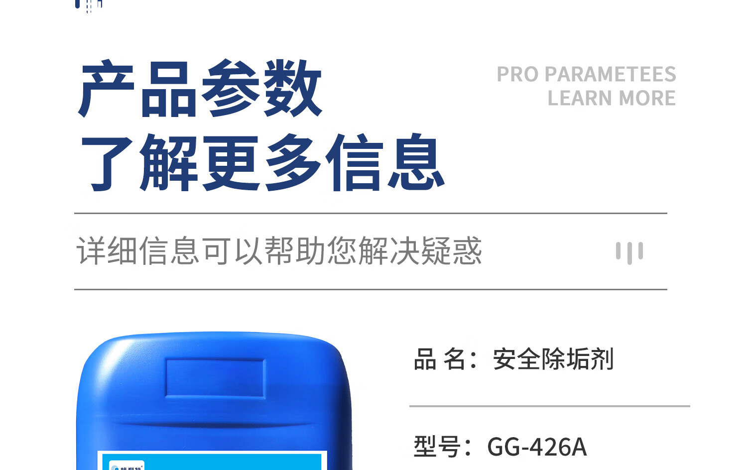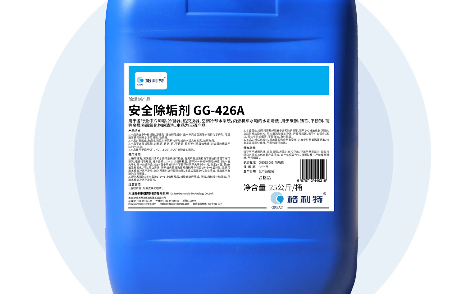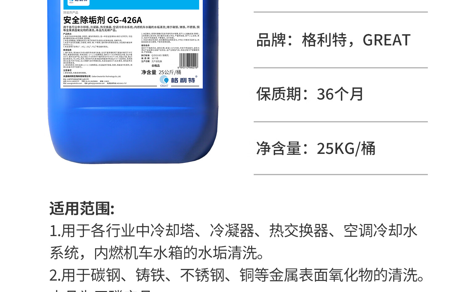 商品名称: 格利特 GG-426A 安全除垢剂(水剂) 工业水循环系统锅炉换热器水箱水垢水锈清洗剂设备防损 25Kg/桶