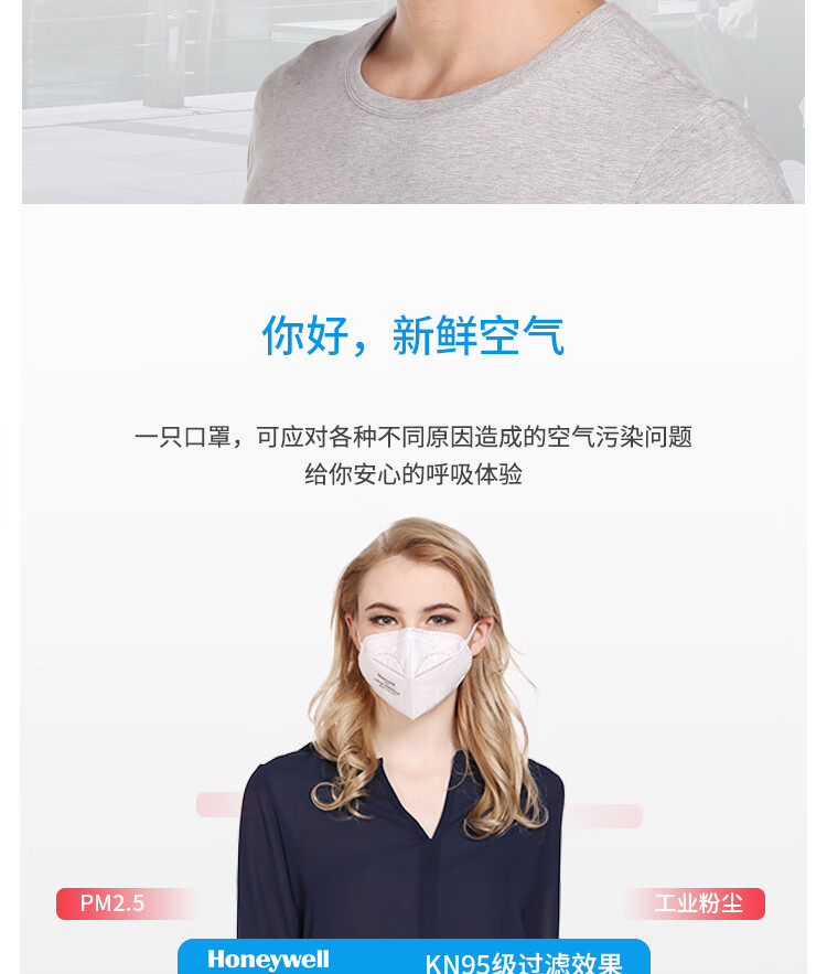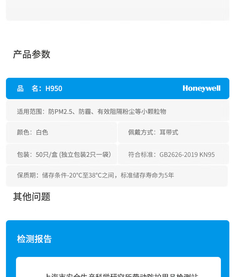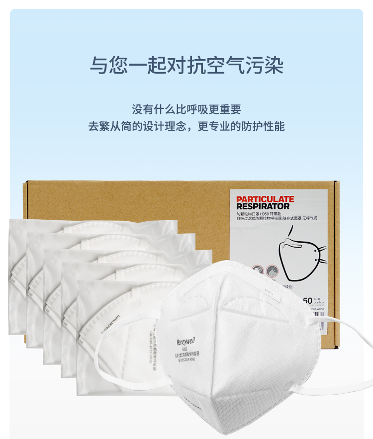 商品名称: 霍尼韦尔/Honeywell N95口罩 防尘口罩防飞沫雾霾头戴式 防尘口罩防飞沫雾霾头戴式无阀NIOSH认证 50只双片装 50只双片装