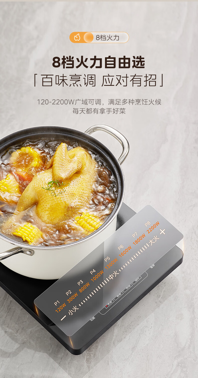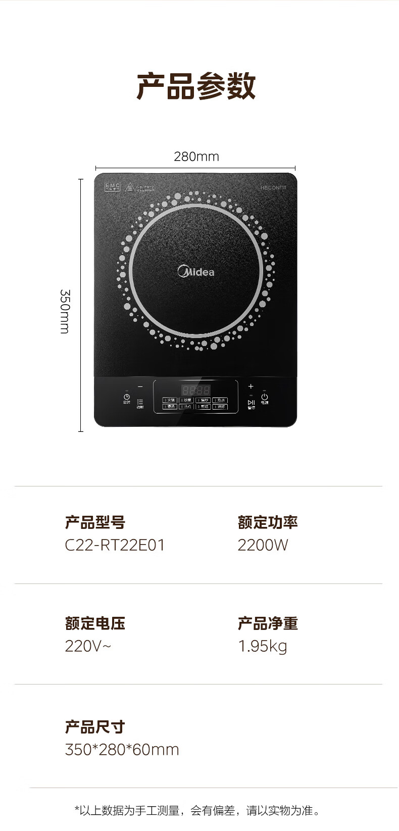 商品名称: 美的/MIDEA C22-RT22E01 电磁炉电陶炉 2200W大功率家用猛火爆炒耐用面板八档火力纤薄电磁灶火锅炉 C22-RT22E01
