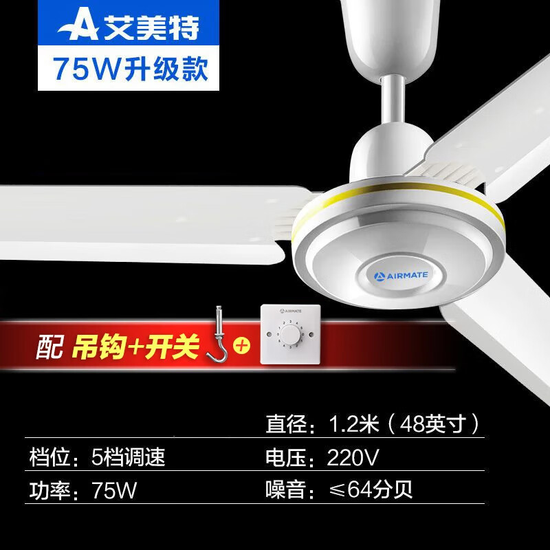 • 商品名称:艾美特/AIRMATE FZ4813 吊扇电风扇家用客厅1.2米48吋楼顶扇 大风力吸顶电风扇工业工厂宿舍铜芯电机风扇 带调速器 FZ4813 FZ4813