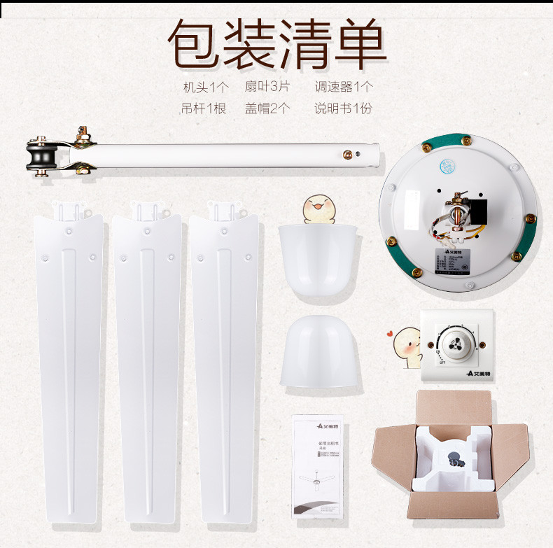家用电器  > 生活电器  > 电风扇  >  艾美特/AIRMATE  >  艾美特/AIRMATE FZ4813 吊扇电风扇家用客厅1.2米48吋楼顶扇 大风力吸顶电风扇工业工厂宿舍铜芯电机风扇 带调速器 FZ4813 FZ4813