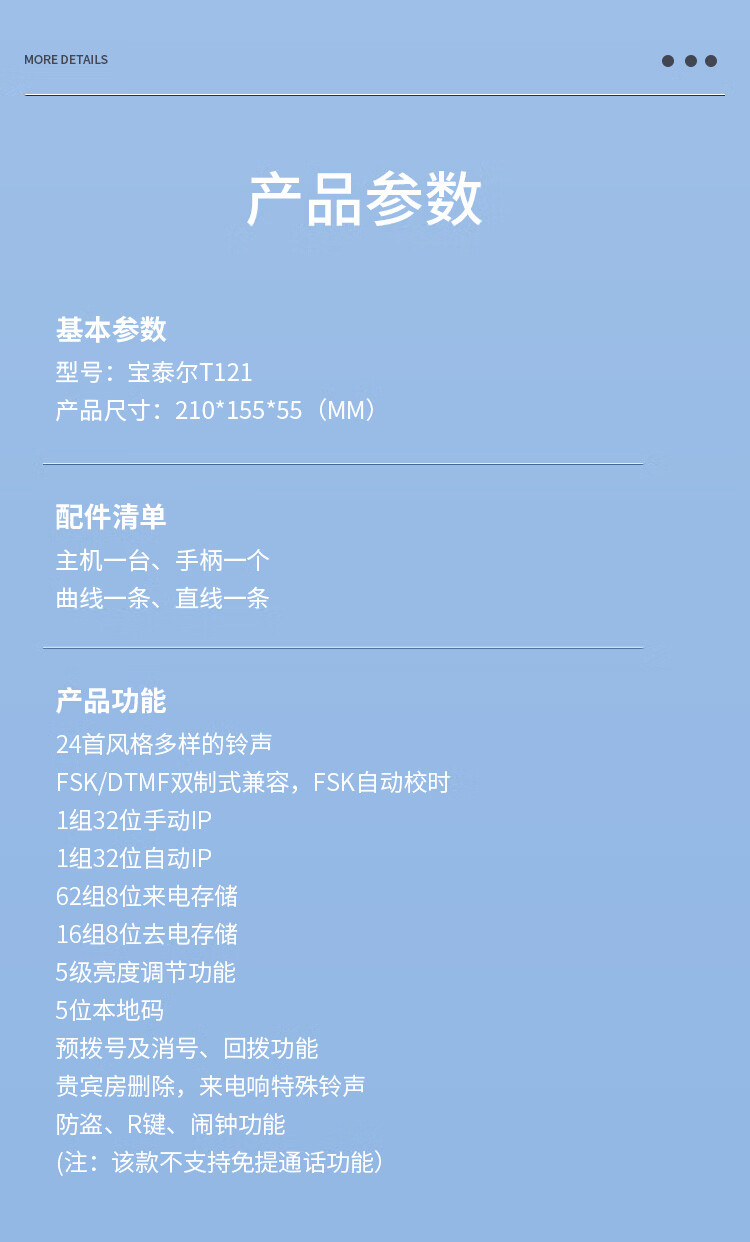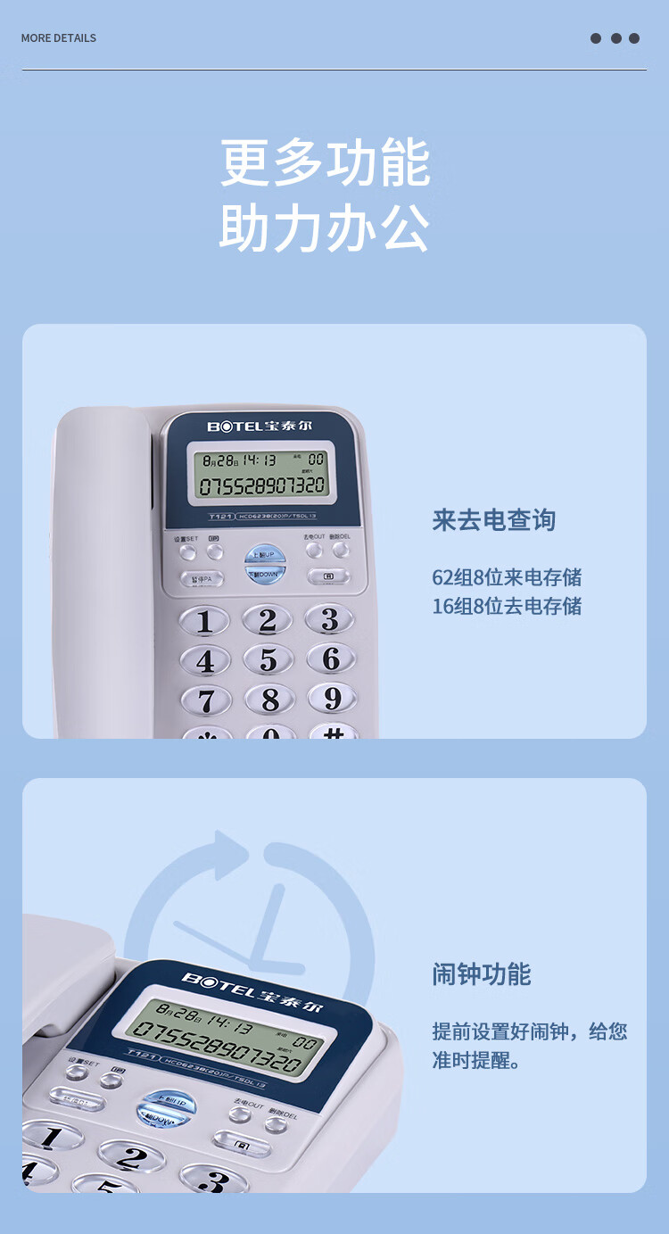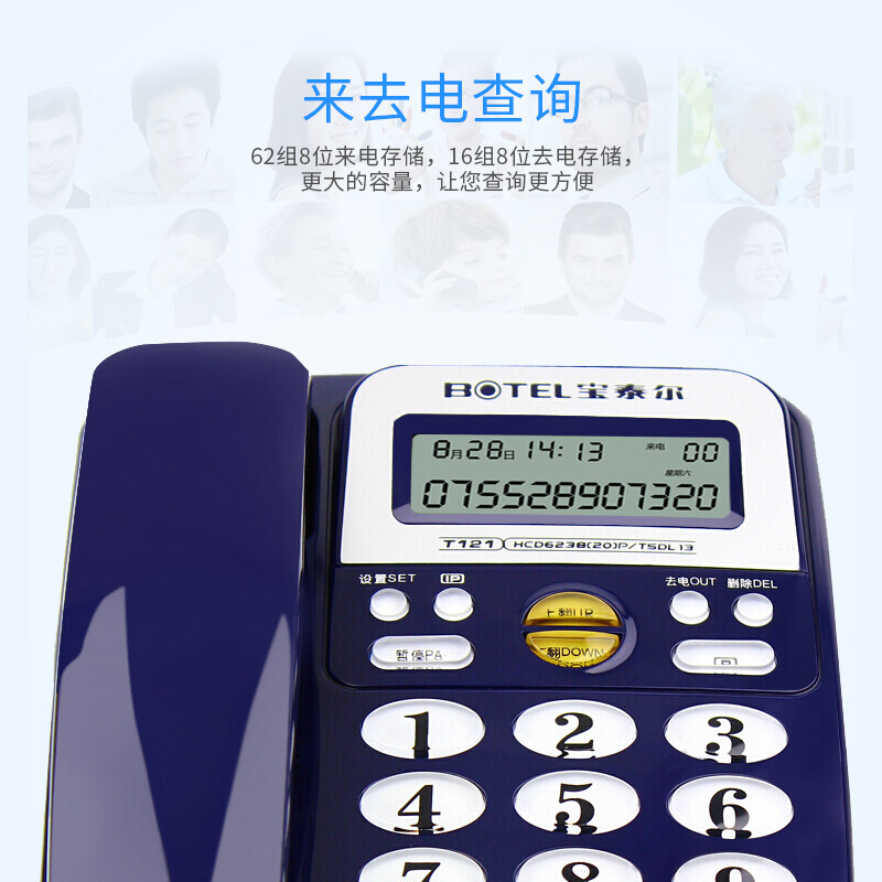商品名称: 宝泰尔 T121 电话机座机 固定电话办公家用免电池/大按键 固话机 商务酒店 来电显示T121 蓝色 T121