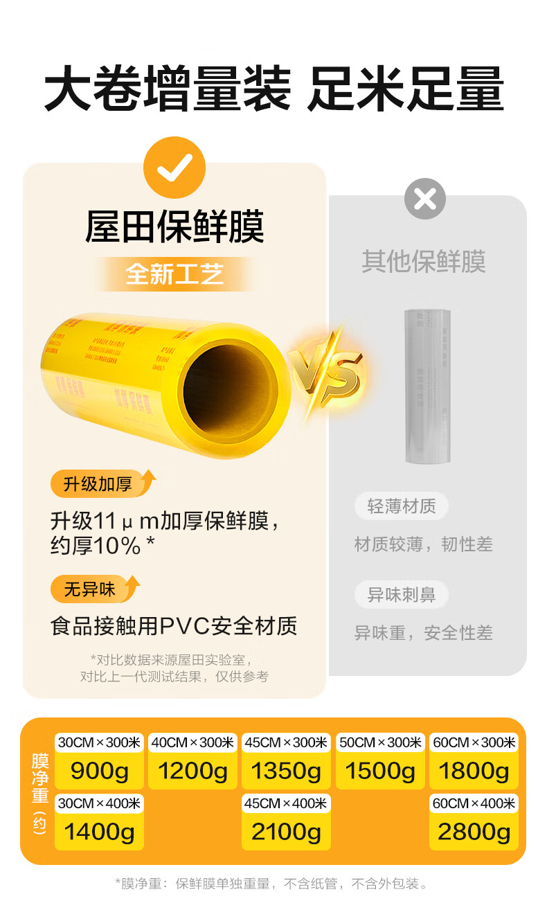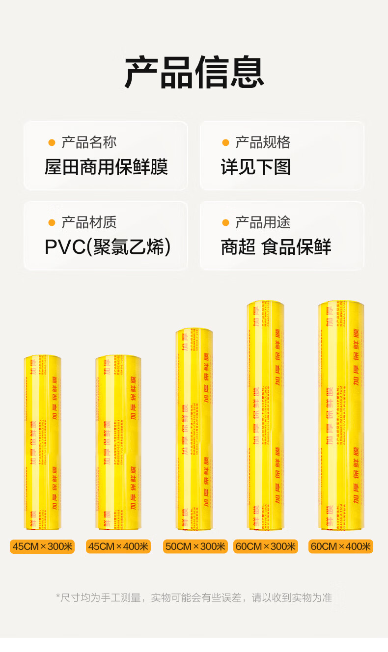 厨具  > 一次性用品  > 其他一次性餐厨具  >  屋田  >  屋田 屋田pvc保鲜膜大卷45cmX300m食品缠绕膜生鲜商超市外卖打包膜塑料 wt-163 防雷一转四+夜灯 食品缠绕膜生鲜商超市外卖打包膜塑料 大卷45cmX300m