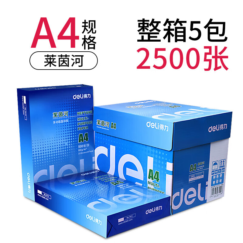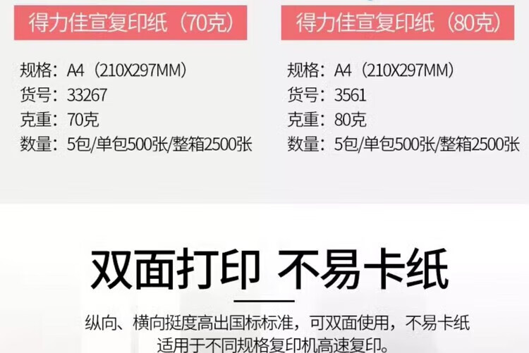 电脑、办公  > 办公用纸  > 复印纸  >  得力/deli  >  得力/deli 3561复印纸 佳宣复印纸 打印纸a4纸加厚打印白纸80g办公用纸草稿纸绘画纸A4纸经济 5包2500张整箱