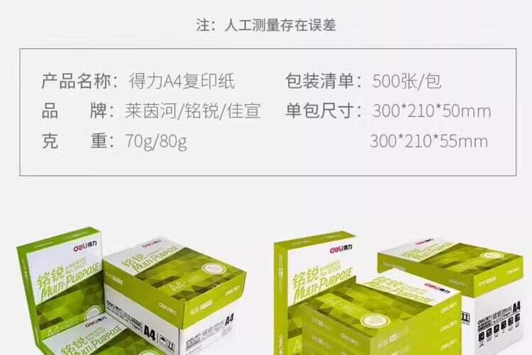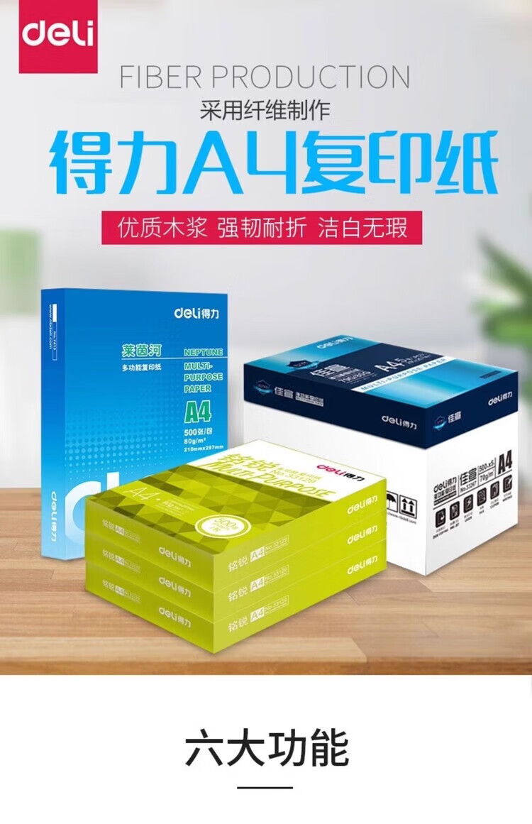 • 商品名称:得力/deli 3561复印纸 佳宣复印纸 打印纸a4纸加厚打印白纸80g办公用纸草稿纸绘画纸A4纸经济 5包2500张整箱
