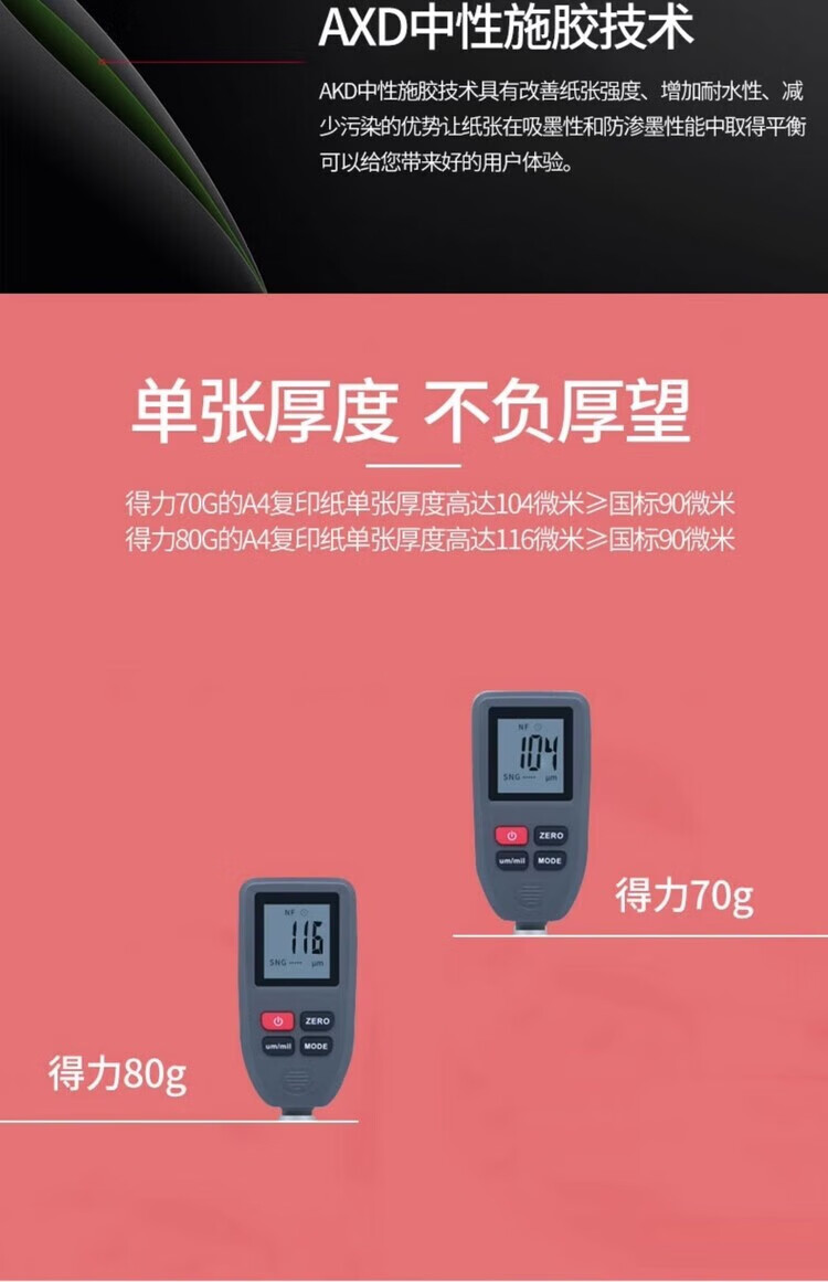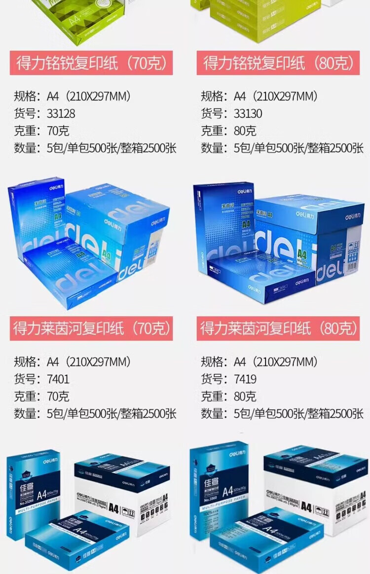 商品名称: 得力/deli 3561复印纸 佳宣复印纸 打印纸a4纸加厚打印白纸80g办公用纸草稿纸绘画纸A4纸经济 5包2500张整箱