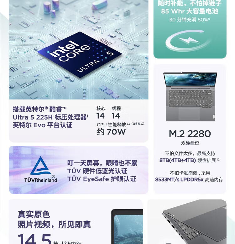 • 商品名称:联想/ThinkBook ThinkBook14+ 2025 AI轻薄办公本 英特尔酷睿Ultra5 14.5英寸 32G 1T 3K 120Hz 英特尔酷睿Ultra5 14.5英寸 32G 1T 3K 120Hz