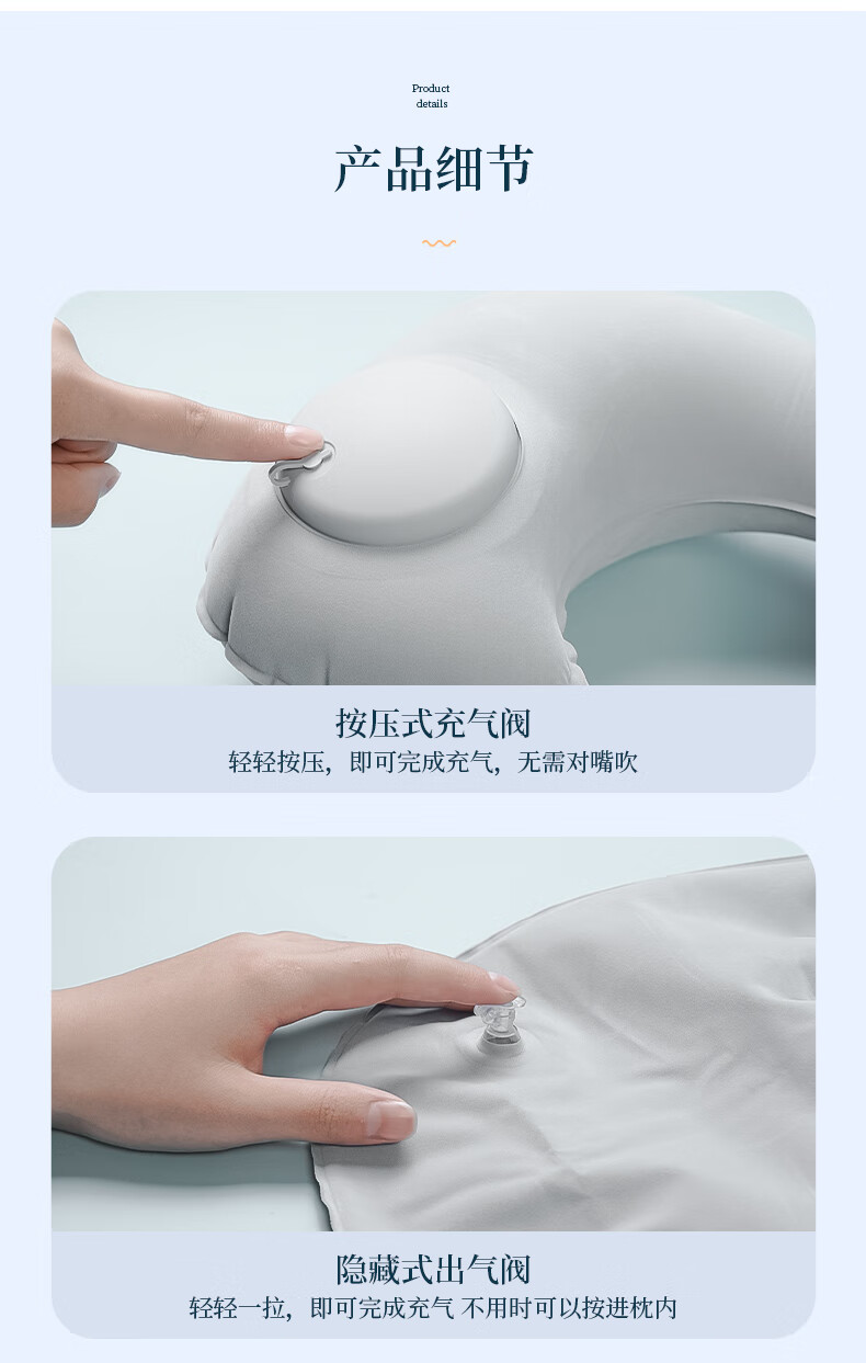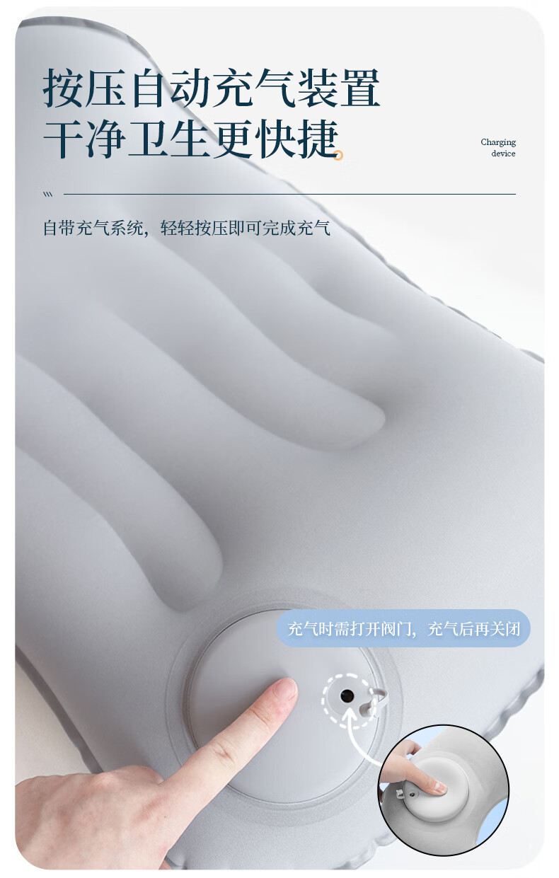 • 商品名称:TA 充气枕头旅行枕 充气枕头 旅行枕按压便携腰枕腰靠坐垫飞机旅行神器抱枕午睡灰色 灰色