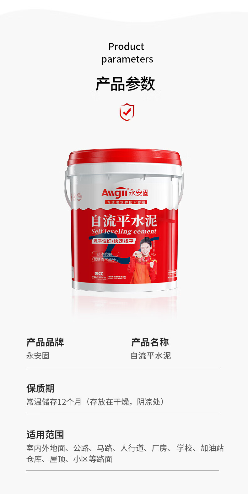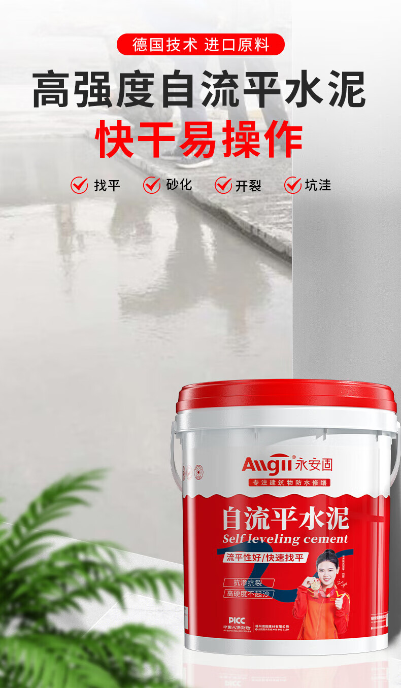 • 商品名称:永安固/allgll YAG-修补专业水泥砂浆 水泥地面修补高强度快干砂浆 防水堵漏王速干填缝胶泥家用水泥胶 自流平地面20kg 20kg