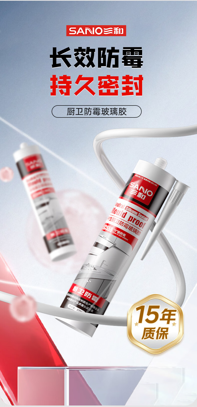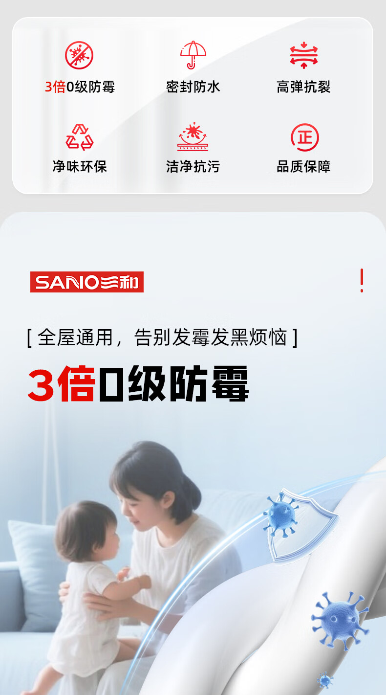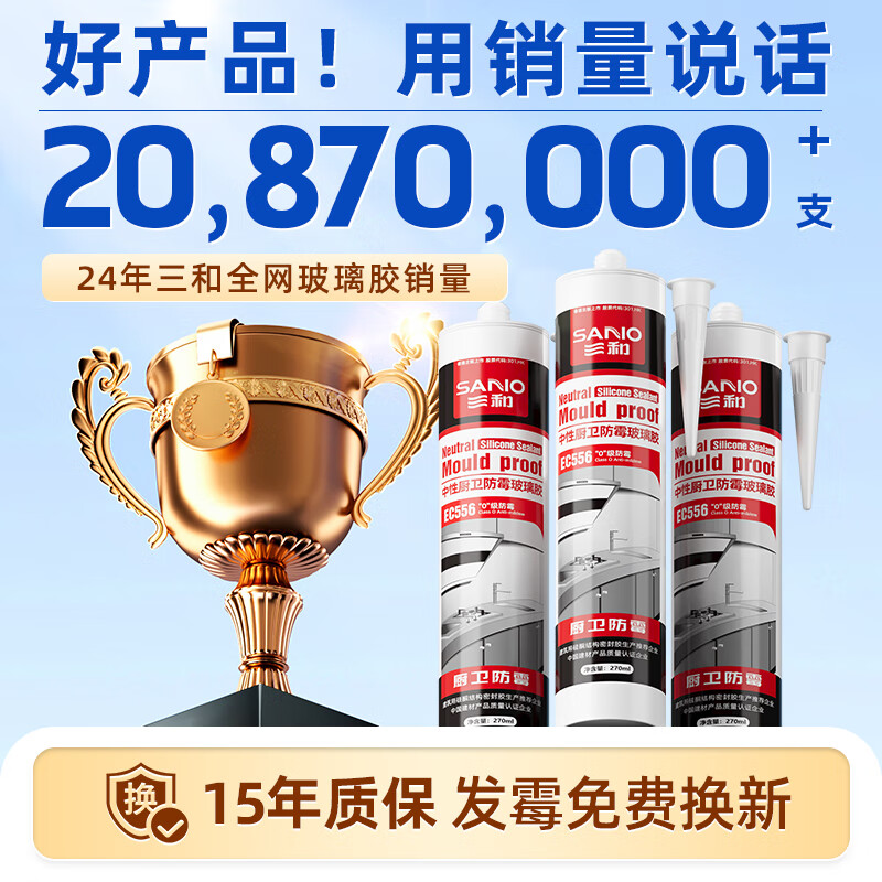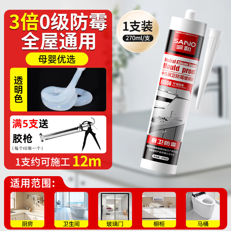 • 商品名称:三和 0级防霉玻璃胶 防霉玻璃胶密封胶中性硅酮厨卫防水防霉封边胶 厨房水槽卫生间收边胶EC556透明 -