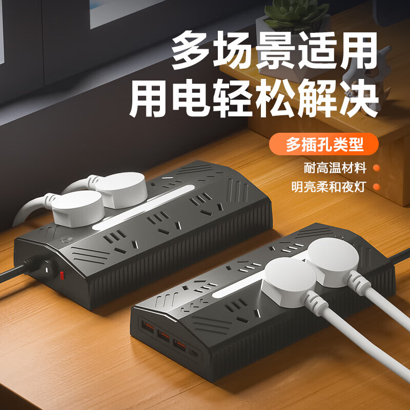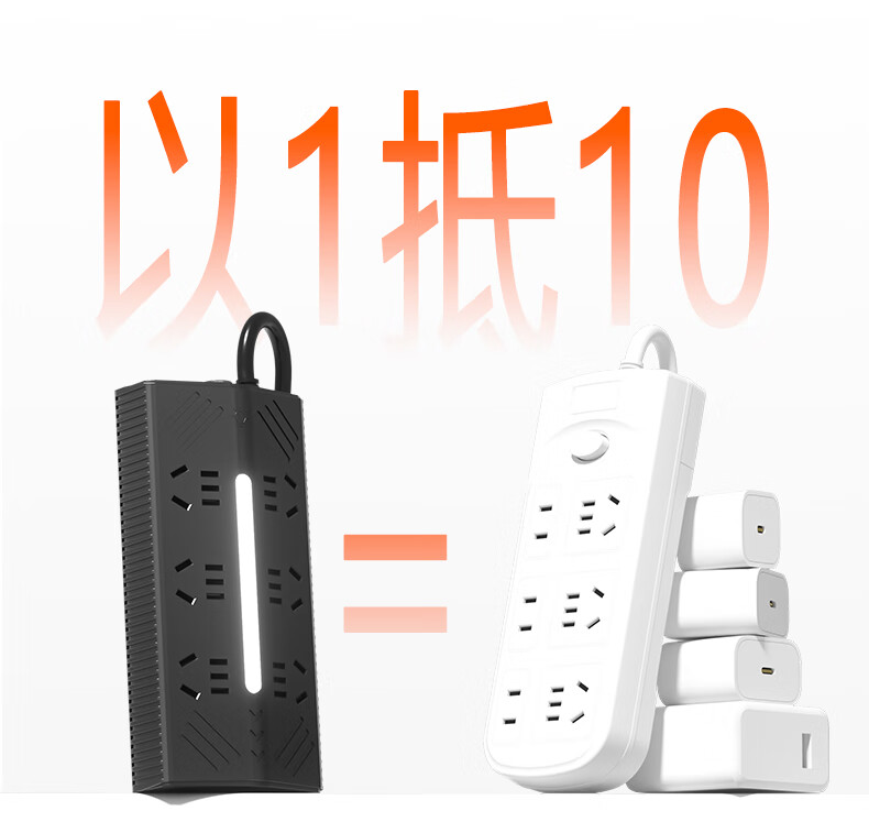 EGFB 多功能转家用插线板 多功能转家用插线板 防雷一转四+夜灯 -