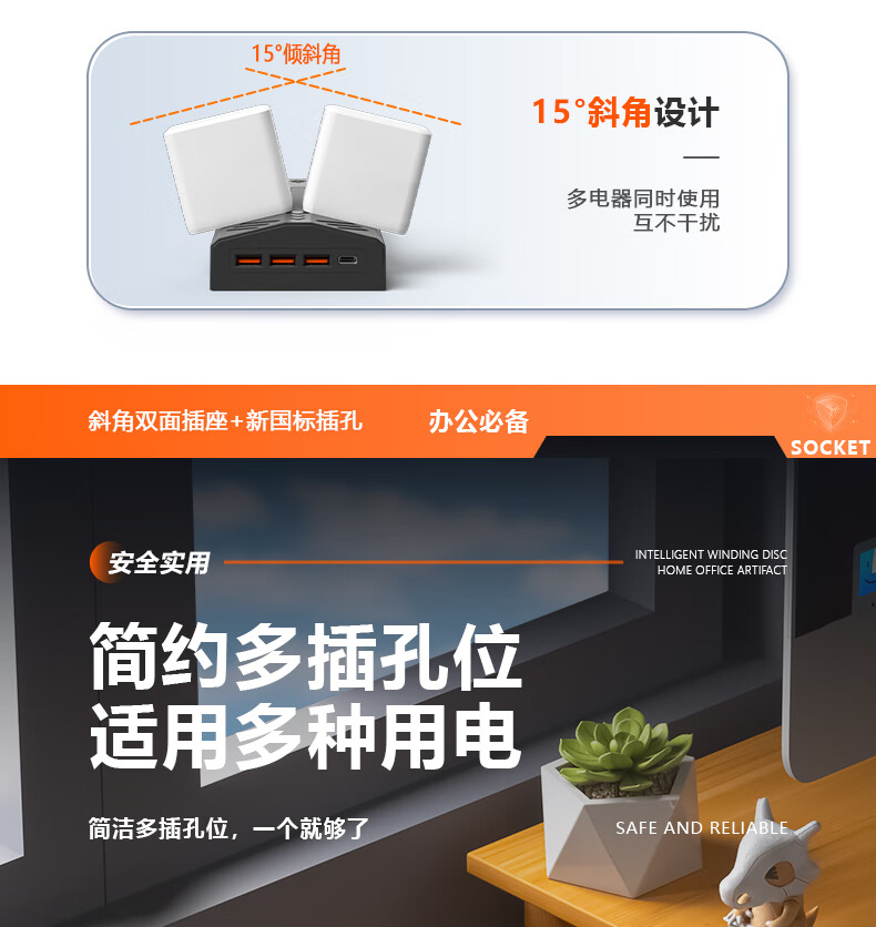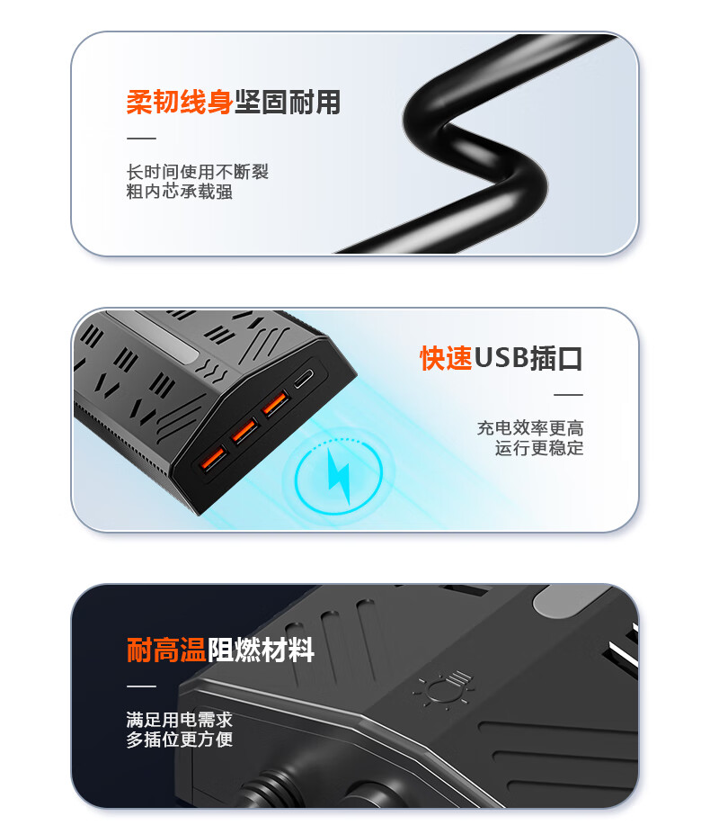 • 商品名称:EGFB 多功能转家用插线板 多功能转家用插线板 防雷一转四+夜灯 -