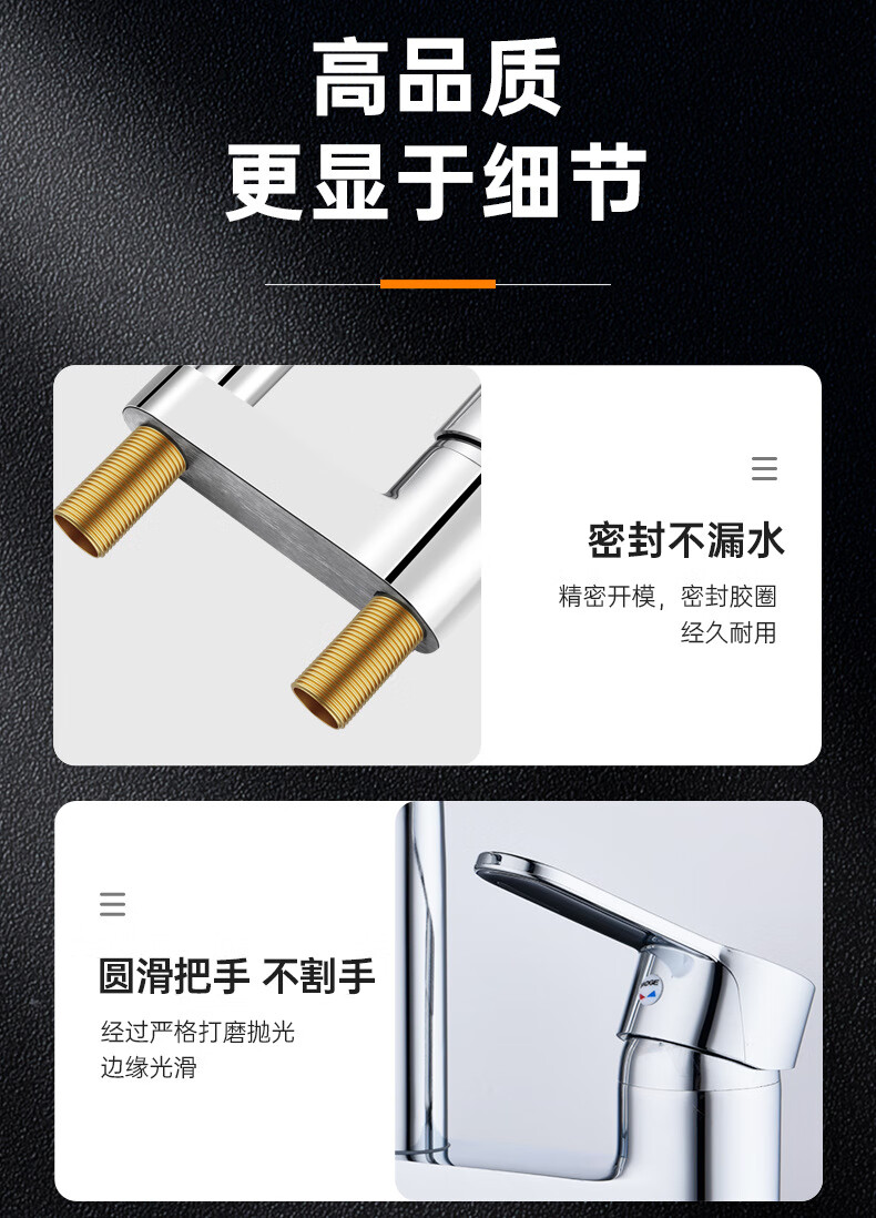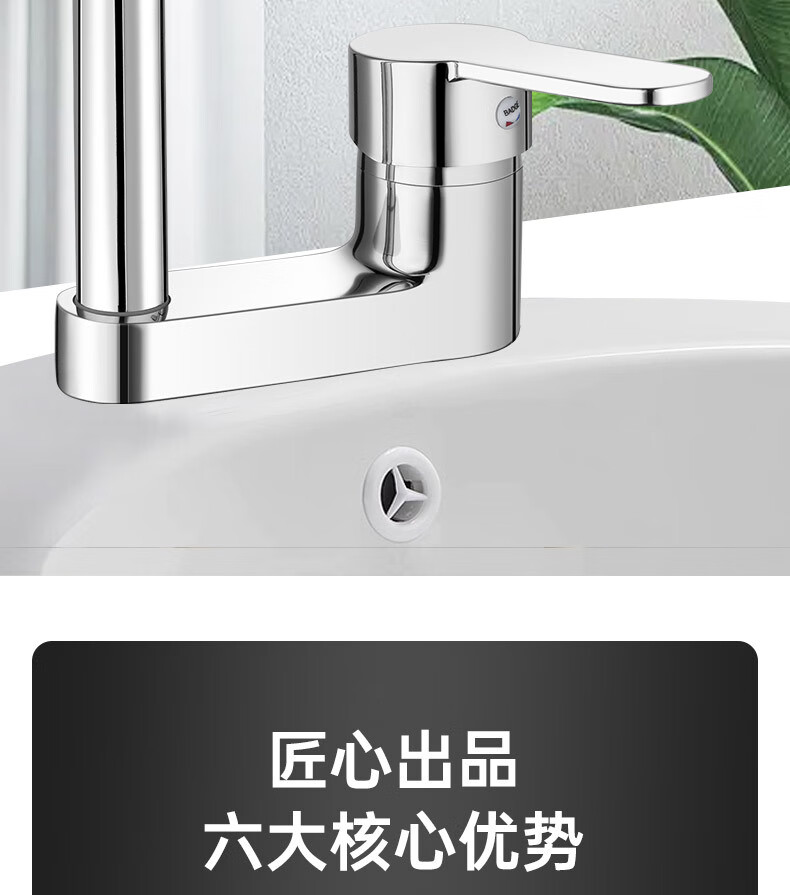 • 商品名称:角徽 C-180423-S 角徽 水龙头冷热水二合一锌合金把手 十年质保 材质:锌合金
