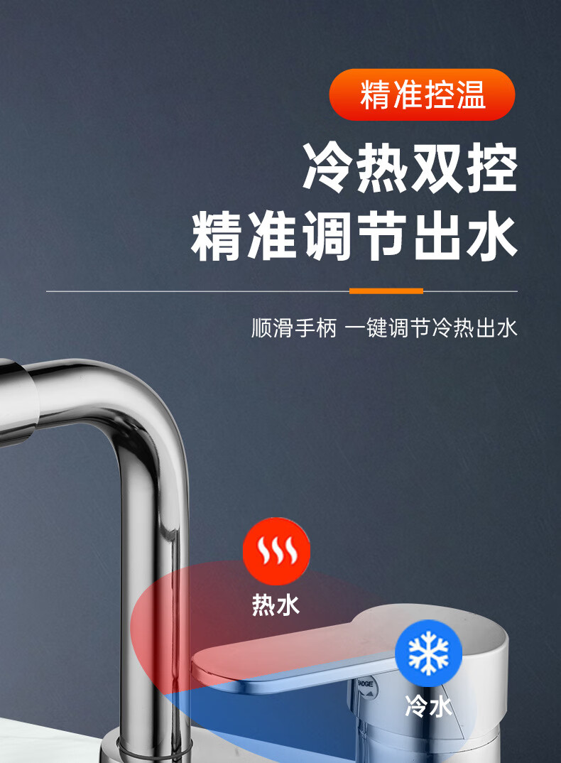 厨房卫浴  > 龙头  > 面盆龙头  >  角徽  >  角徽 C-180423-S 角徽 水龙头冷热水二合一锌合金把手 十年质保 材质:锌合金