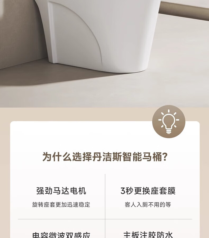 • 商品名称:丹洁斯 DJS-907UC 丹洁斯自动换套马桶加热电动坐便器 中配款(座圈加热)插电款 305mm 中配款;