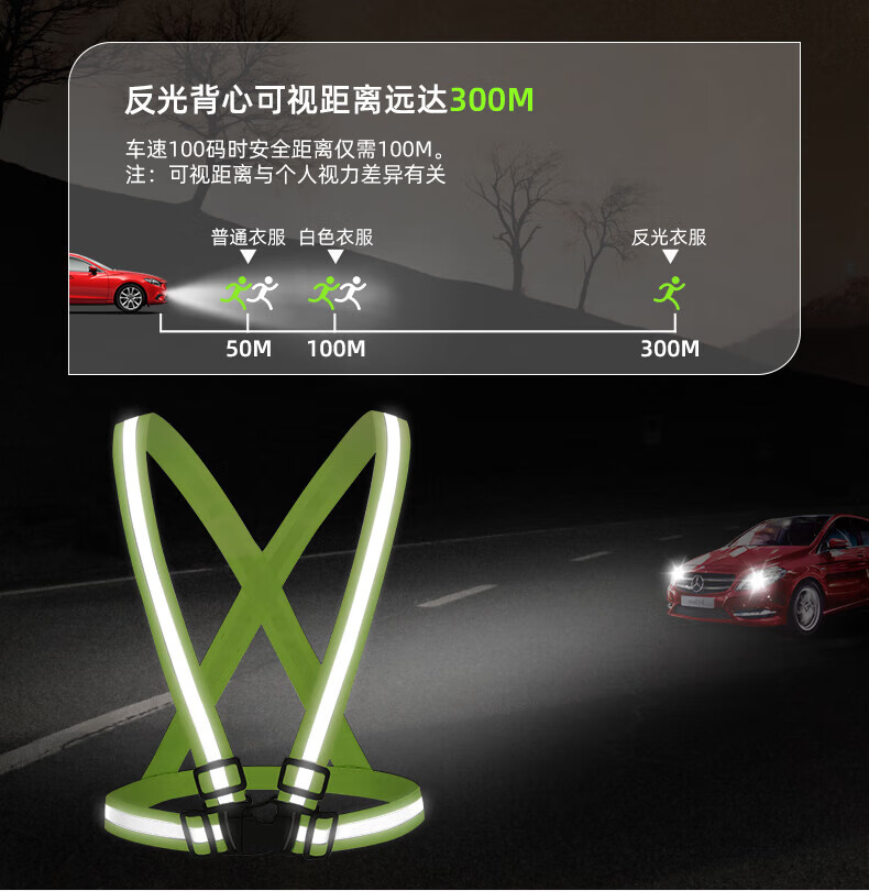 京家 反光背带 京家反光背心反光背带跑步运动安全警示弹力带环卫马甲工作服 卡扣款 详见商品描述