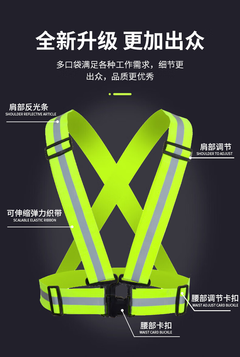• 商品名称:京家 反光背带 京家反光背心反光背带跑步运动安全警示弹力带环卫马甲工作服 卡扣款 详见商品描述