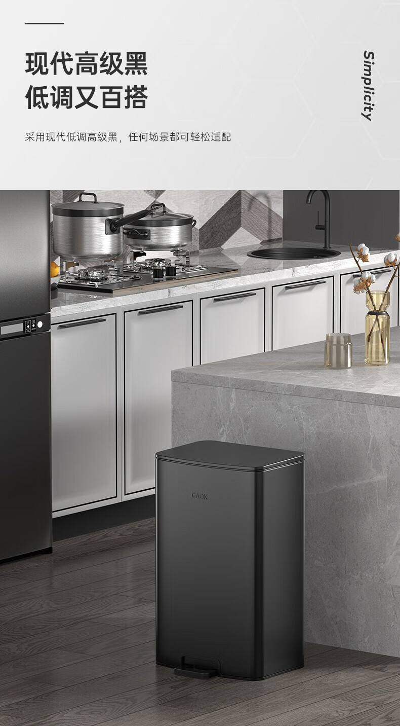 GAOK 7758H-30L GAOK 7758H-30L 脚踏桶 不锈钢 黑色 H-30L; 不锈钢;