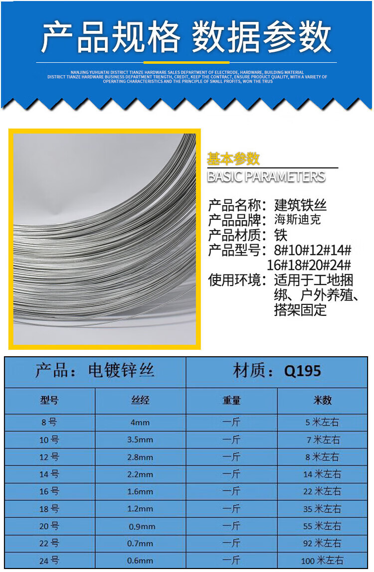 • 商品名称:奕澜/ALWAYSWAVE 锌铁丝 奕澜锌铁丝 捆绑细铁丝线 16号【1KG】粗1.6mm约/12.3kg 16号铁丝线