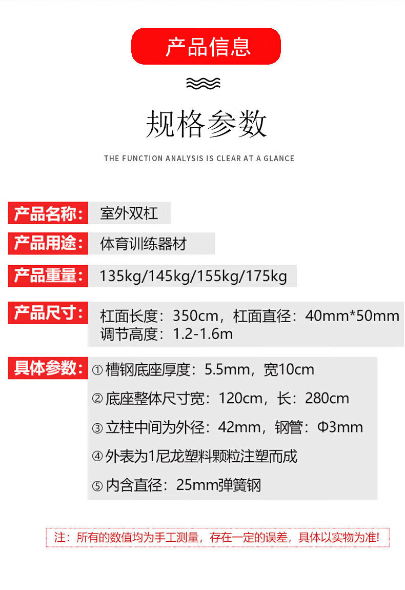 • 商品名称:智蓝剑 室外双杠单双杠 智蓝剑室外双杠单双杠移动式可调节 双杠140KG军训款 军绿色 默认