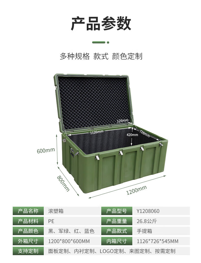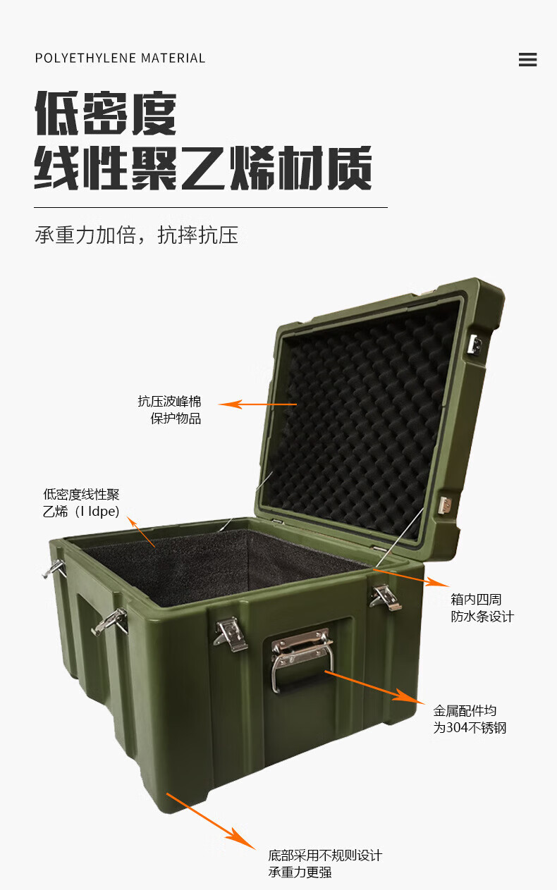 • 商品名称:奕澜/ALWAYSWAVE 1000*700*800mm+内衬 奕澜滚塑箱 空投箱户外野营便携式多功能器材箱1000*700*800mm+内衬 1000*700*800mm