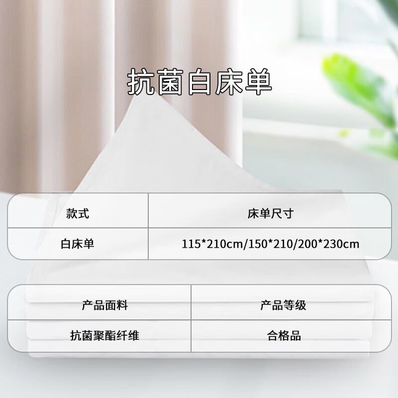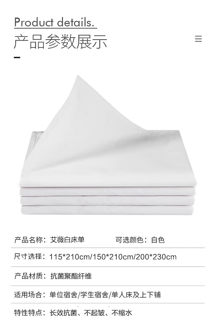 • 商品名称:京家 白色150*210cm 京家白床单床单白色军训学生宿舍单人床单单件150*230cm 150*230cm