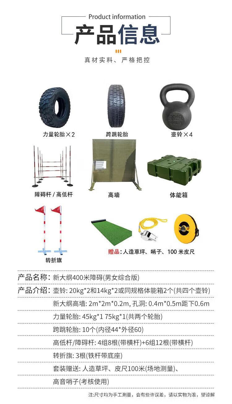 • 商品名称:京家 组合器材(综合套装) 京家新大纲400米障碍 户外拓展体能训练器材 组合器材(综合套装) 默认