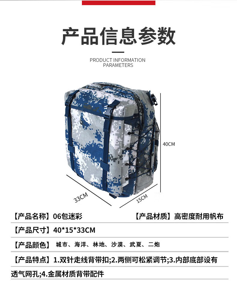 • 商品名称:京家 海洋数码色 京家06作训包 双肩包户外野外训练登山户外迷彩背包 海洋数码色 均码