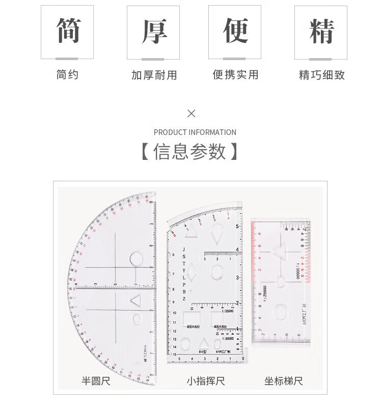 商品名称: 京家 尺 京家地形学作图尺经纬度尺 10种经纬度半圆尺+坐标梯尺 10种经纬度半圆尺+坐标梯尺