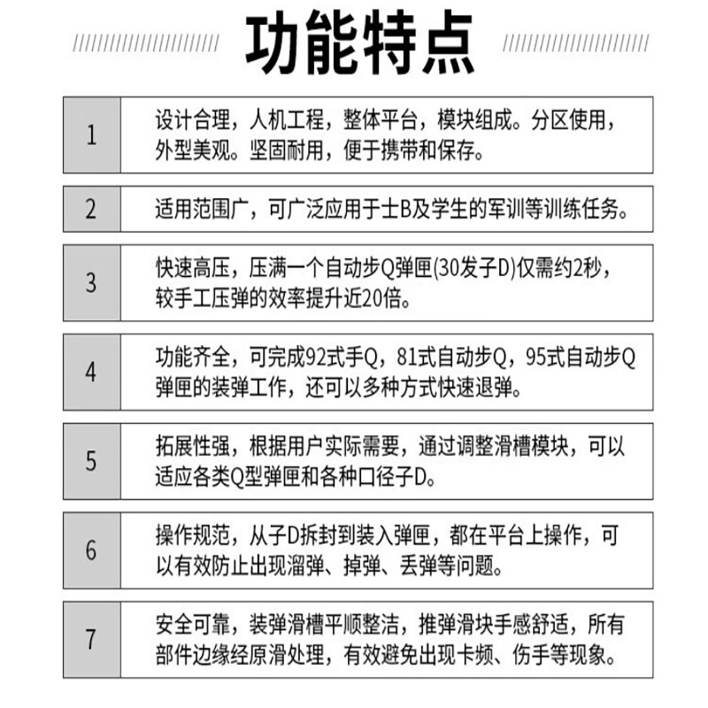 • 商品名称:京家 多功能压弹训练器 京家多功能压弹训练器 多功能三合一快速压弹器训练 军迷爱好 军绿 多功能压弹训练器