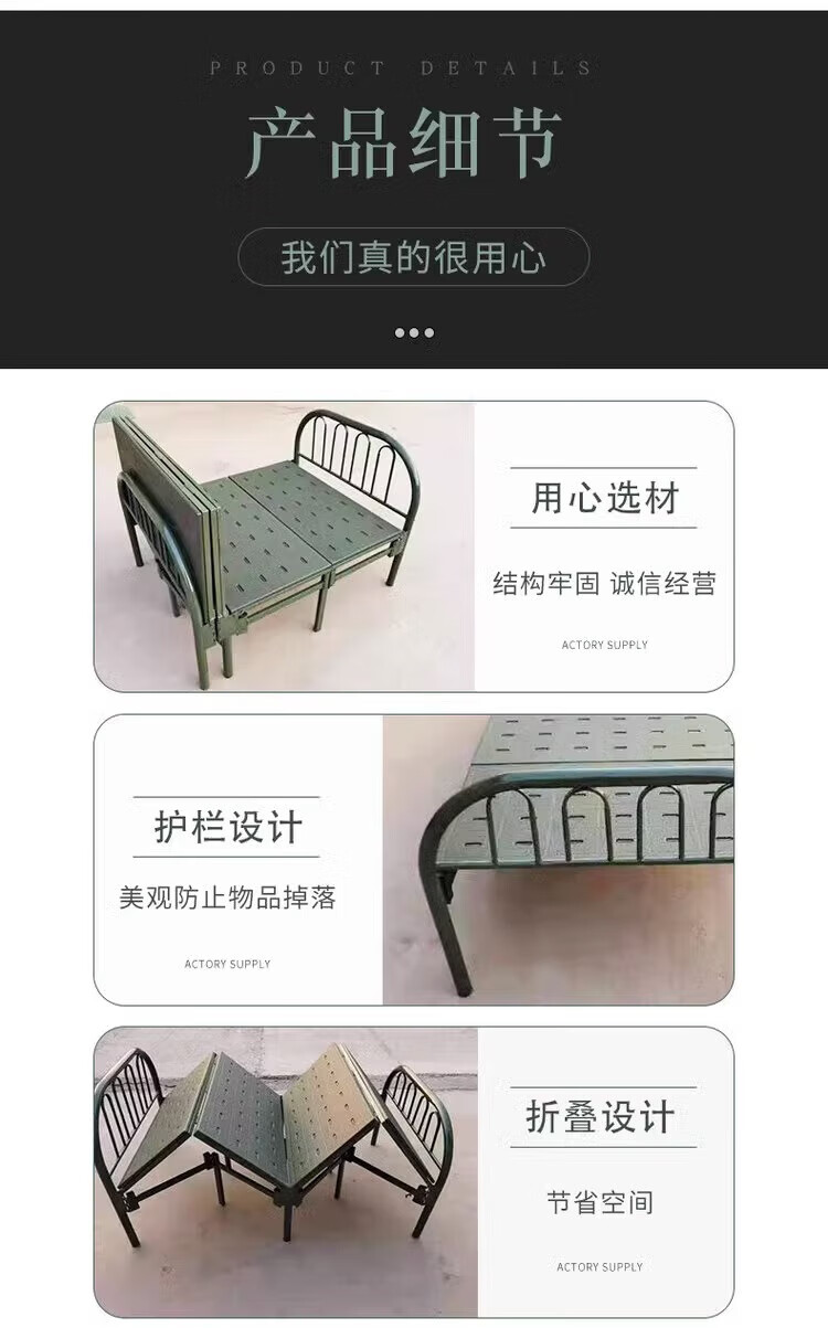 • 商品名称:荣兵 HY27-1 荣兵行军床 军绿色野战钢塑四折床行军床1900*900*400mm企业业务 HY27-1