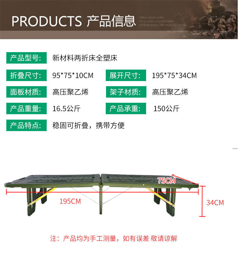 商品名称: 荣兵 ZDC07 荣兵全塑两折行军床 便携式折叠床单人床 企业业务 ZDC07