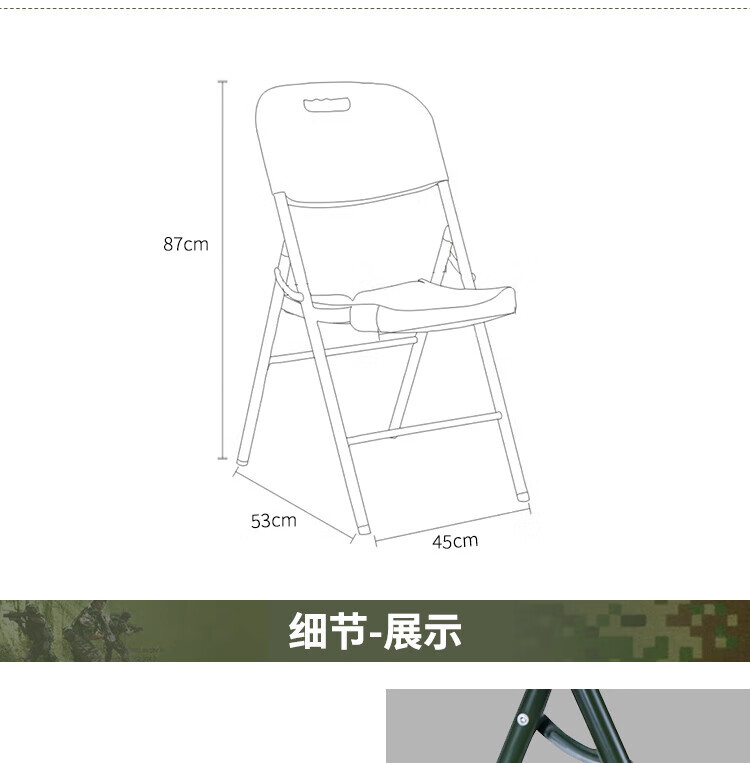 • 商品名称:华恒臻 HZ019 华恒臻 野战折叠作业椅训练折叠椅多功能折叠椅吹塑椅HZ019 企业业务 HZ019