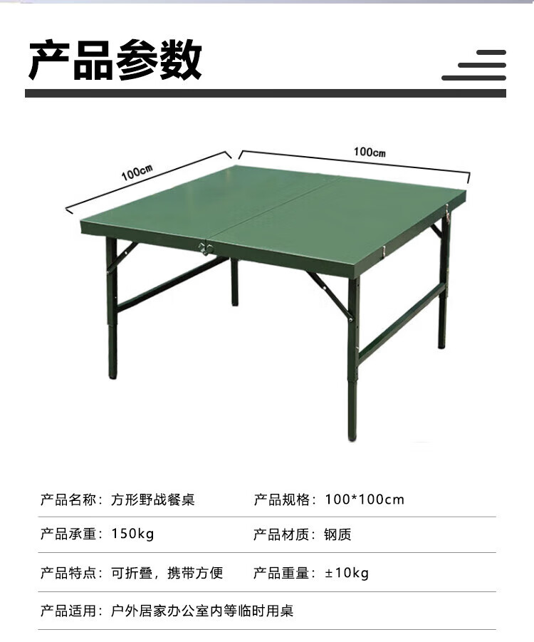 • 商品名称:荣兵 HY31-1 荣兵野战折叠桌 野战餐桌便携式多功能折叠桌 钢制HY31-1 军绿色 企业业务 HY31-1