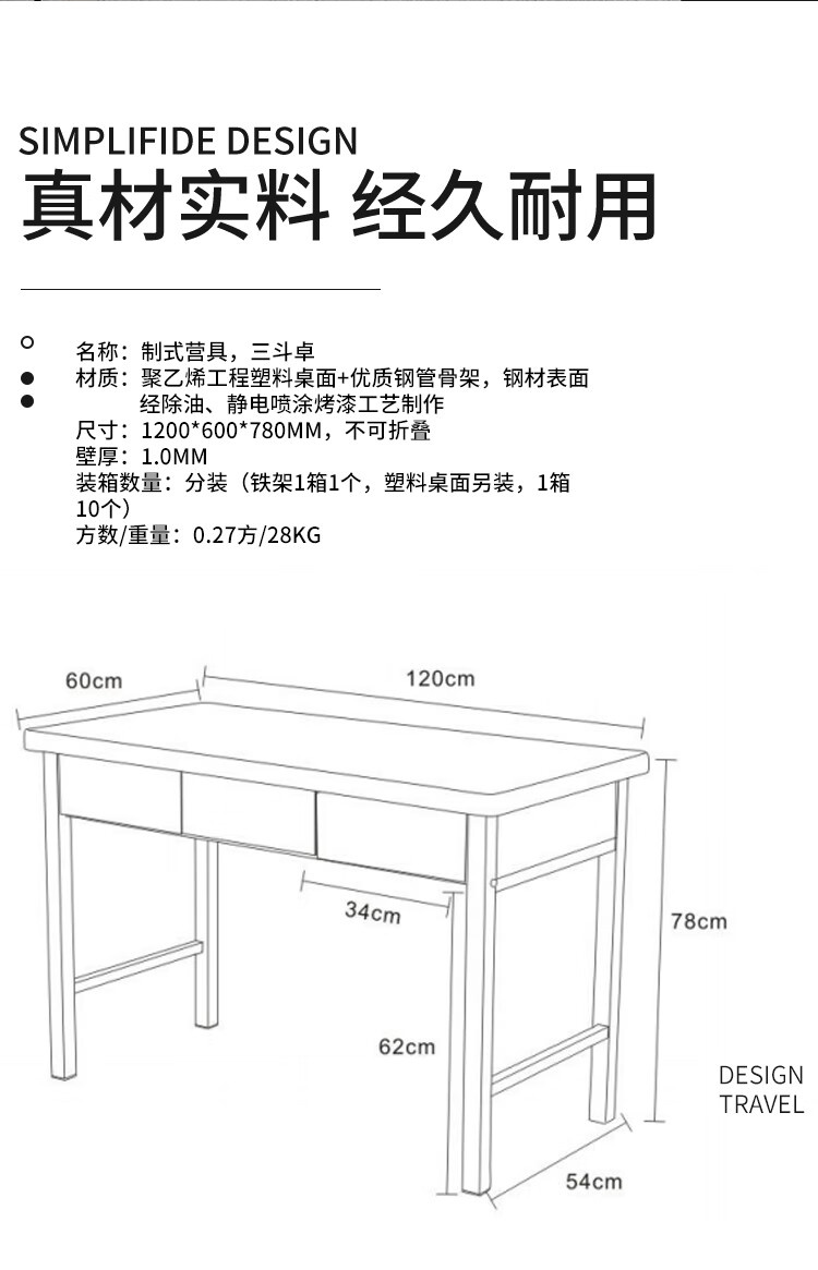 • 商品名称:荣兵 HY33 荣兵三斗办公桌办公桌钢桌学习办公桌带三斗不含椅子 企业业务 HY33