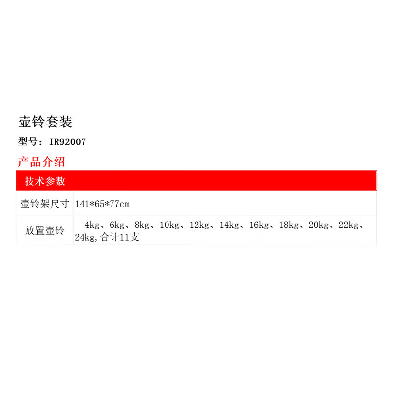 • 商品名称:铁人/IRONMAN IR92007 铁人(IRONMAN)壶铃套装 健身 锻炼身体 壶铃套装 IR92007