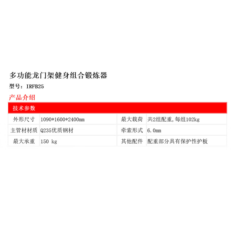 • 商品名称:铁人/IRONMAN IRFB25 铁人(IRONMAN)多功能龙门架健身组合锻炼器 IRFB25