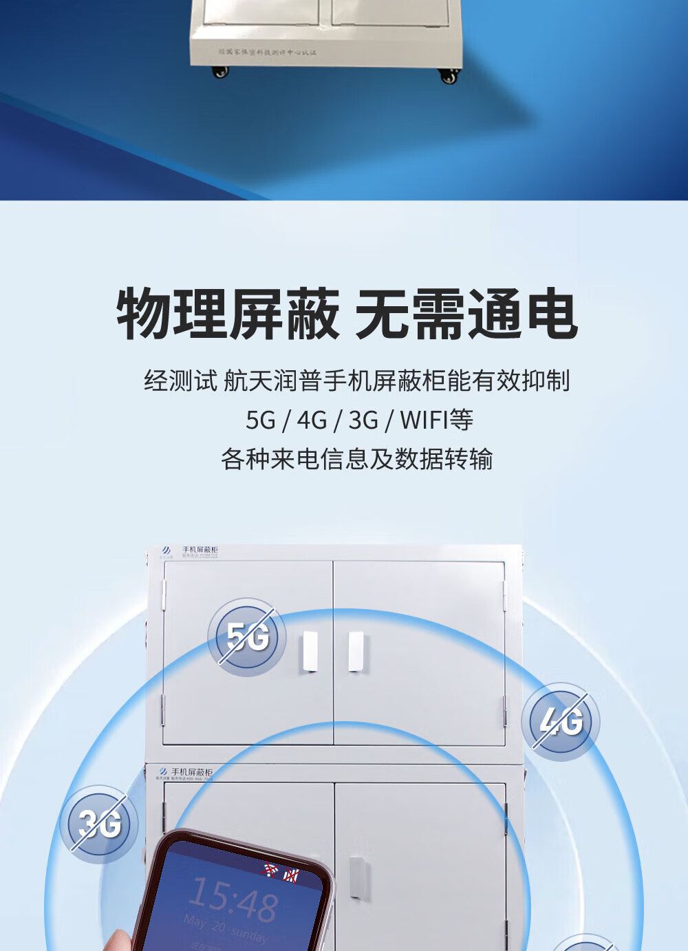 • 商品名称:航天润普 20A 航天润普 2020A 手机屏蔽柜 信号阻断柜 保管柜物理屏蔽 电子产品存放柜 双开门落地式屏蔽柜 高179CM 60格 20A