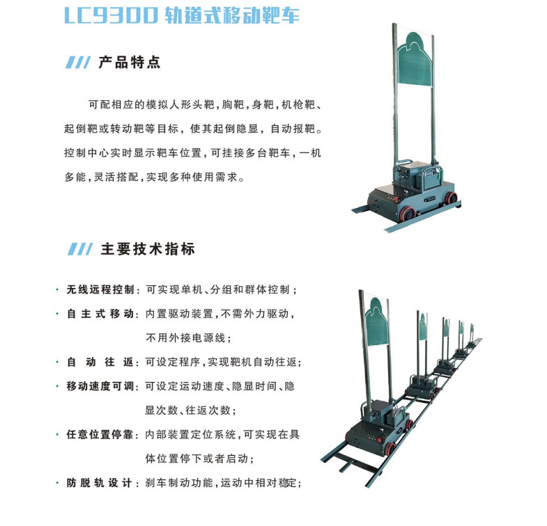 • 商品名称:智蓝剑 轨道式移动靶1台主车+4台拖车(不含靶机) 智蓝剑靶机 轨道式智能移动靶车一拖五自动报靶系统含靶机轨道20米 轨道式移动靶1台主车+4台拖车(不含靶机) 轨道式移动靶1台主车+4台拖车(不含靶机)