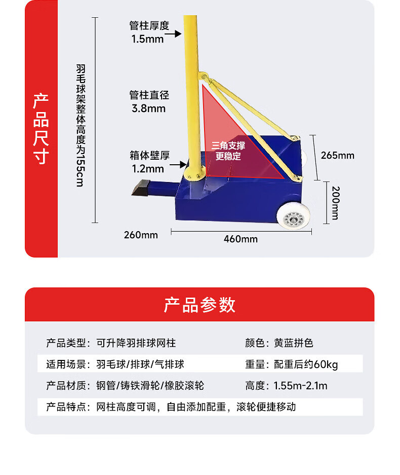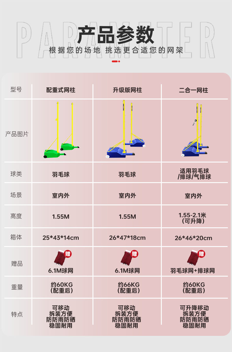• 商品名称:健伦/JEEANLEAN 羽毛球网架 健伦羽毛球网架 排球网球架气排球架子多功能专业标准羽毛球柱 羽毛球网架