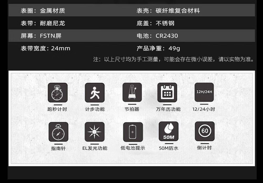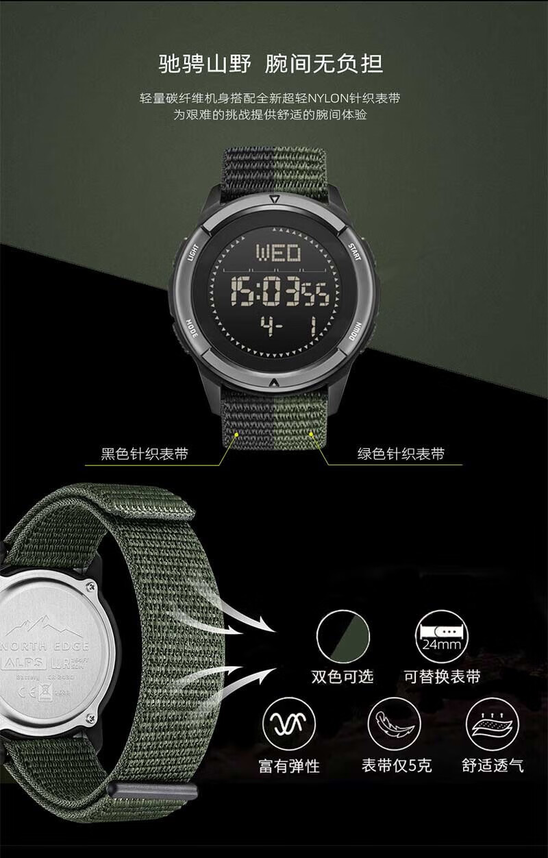 • 商品名称:NORTH EDGE ALPS NORTH EDGE碳纤维电子手表男士轻便指南针计步秒表节拍器腕表 ALPS【黑色】 ALPS