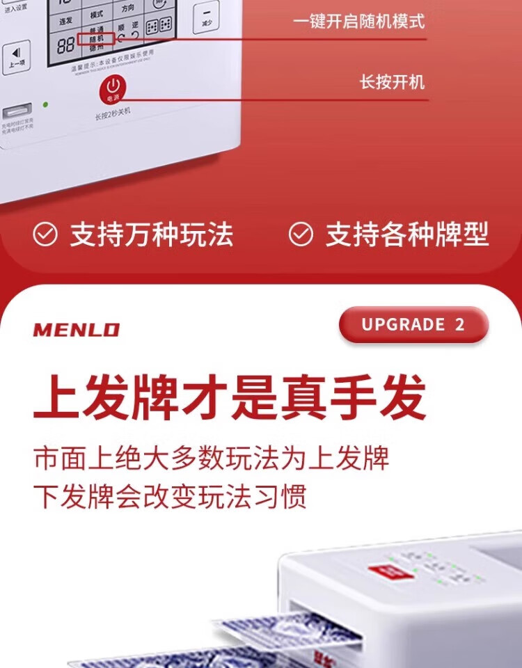 • 商品名称:猛龙 免洗万能版(第3代) 猛龙(Menlo)自动发牌机免洗牌机斗地主德州掼蛋扑克牌发牌机 免洗万能版(第3代)