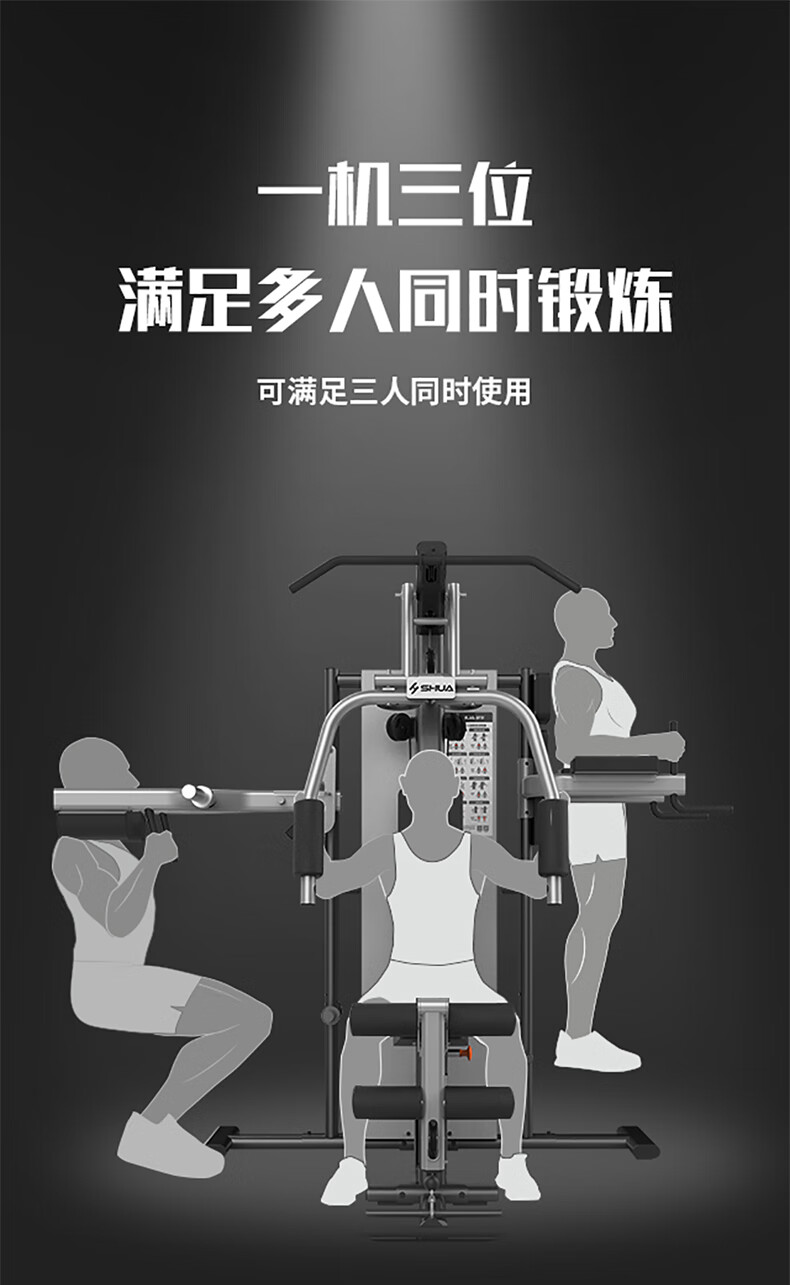 • 商品名称:舒华/SHUA SH-G5203 舒华(SHUA)SH-G5203综合训练器多功能三人力量站【配套5-10kg杠铃片】 SH-G5203