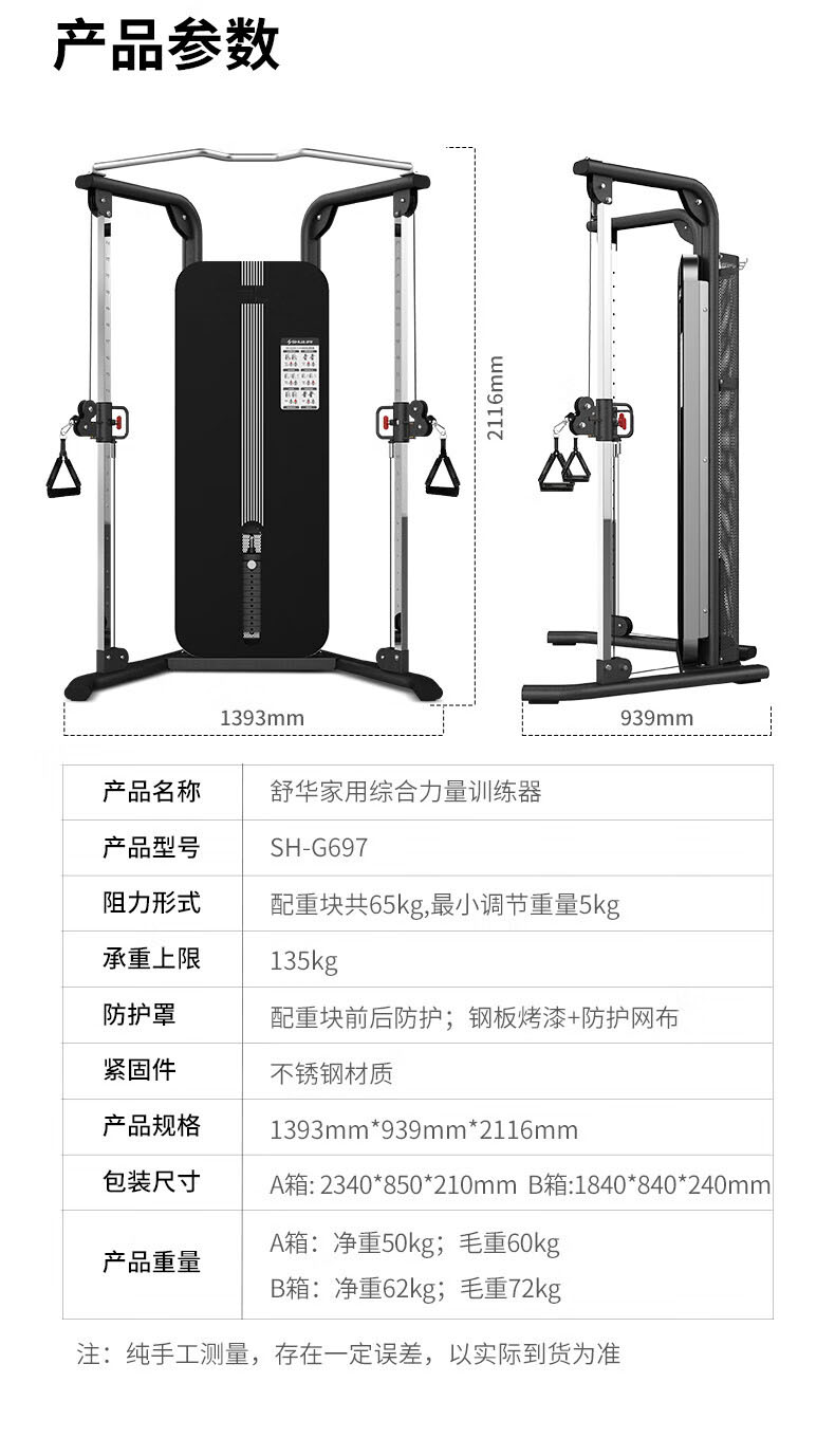 • 商品名称:舒华/SHUA SH-G697 舒华(SHUA)综合训练器龙门卧推架深蹲架健身器材多功能一体机小飞鸟SH-G697 SH-G697