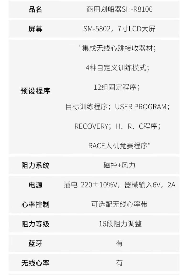 商品名称: 舒华/SHUA SH-R8100 舒华(SHUA)商用磁阻风阻双阻力划船机家用健身器材划船器SH-R8100 SH-R8100