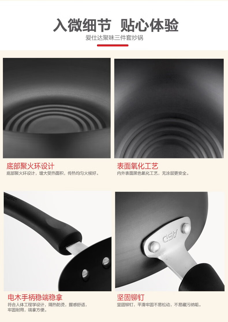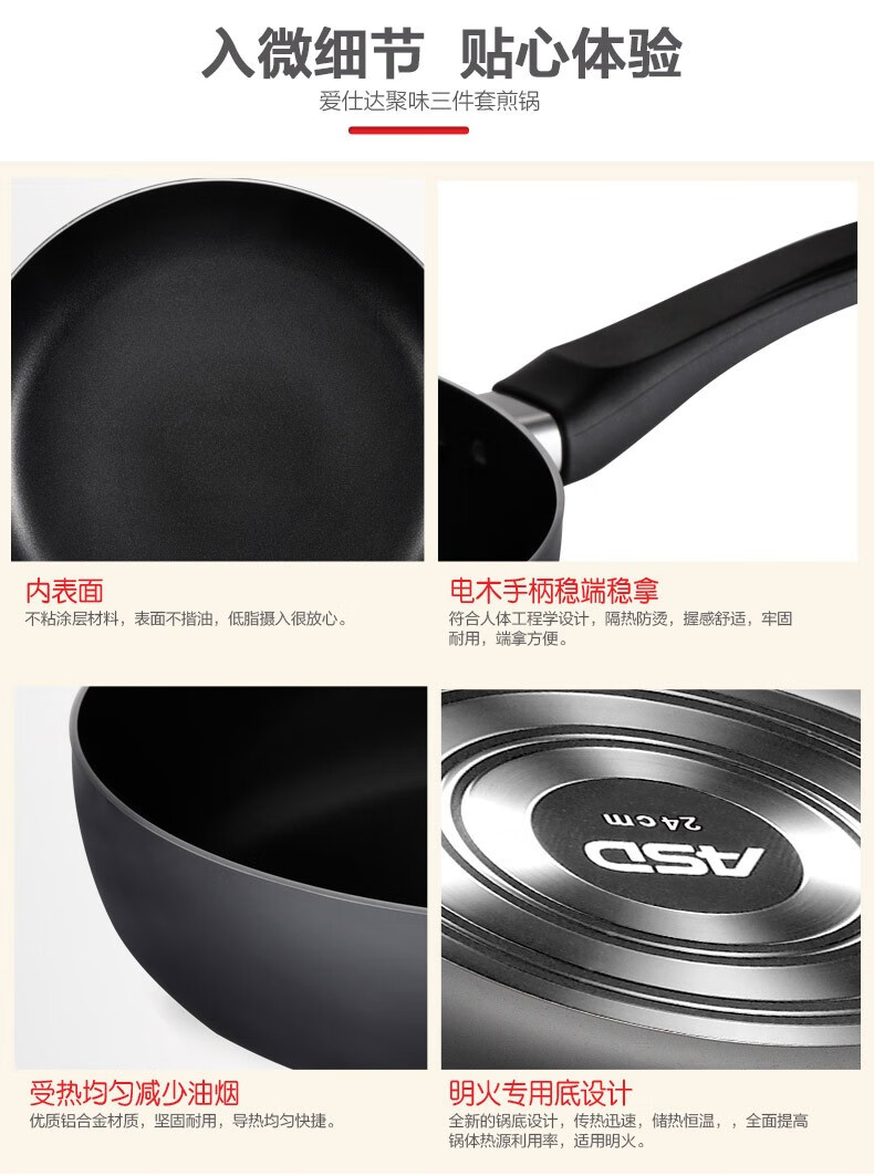 • 商品名称:爱仕达/ASD PH03B2TG 爱仕达(ASD) 聚味锅具套装精铁无涂层不粘煎锅三件套 炒锅30cm +煎锅26cm +汤锅20cm明火适用 PH03B2TG PH03B2TG