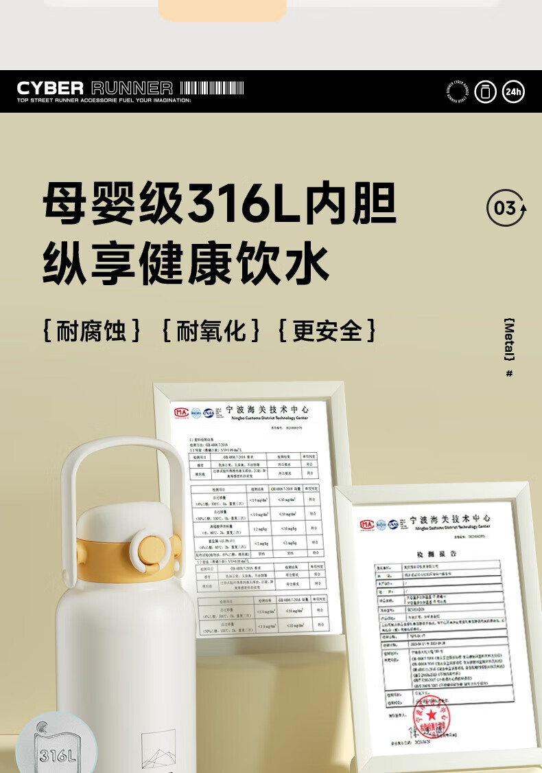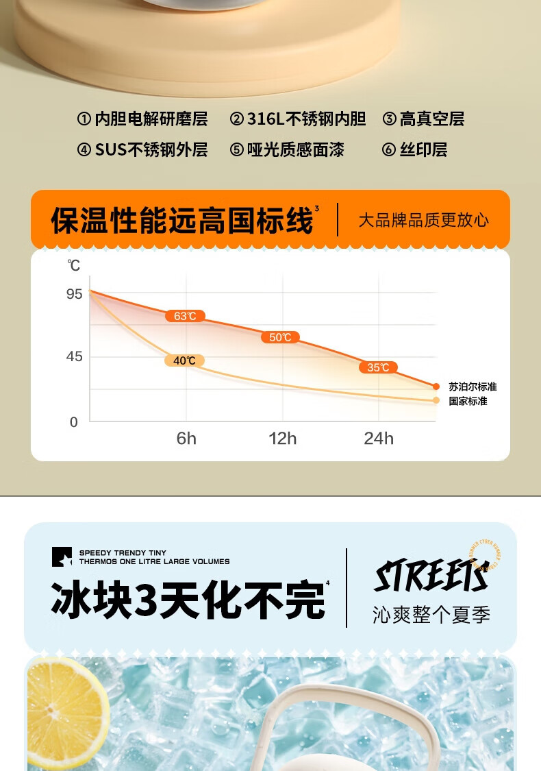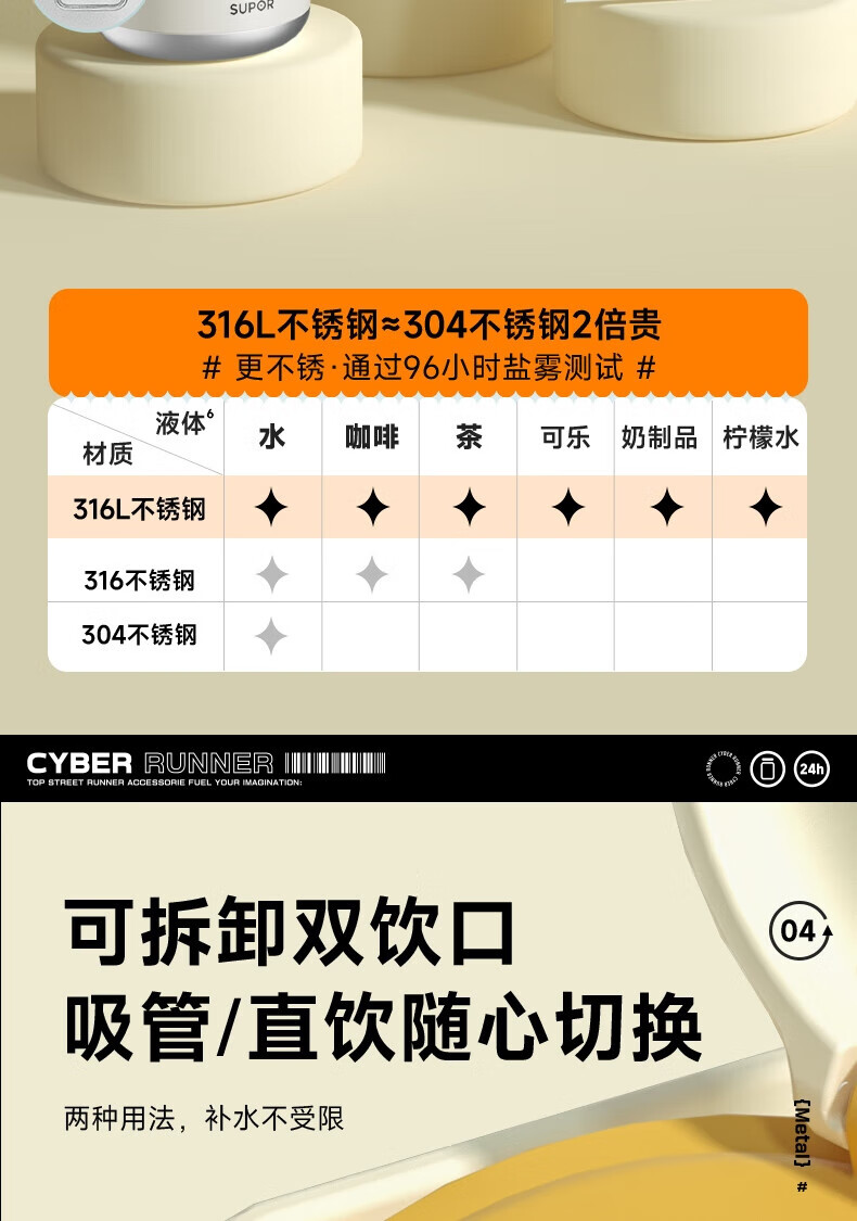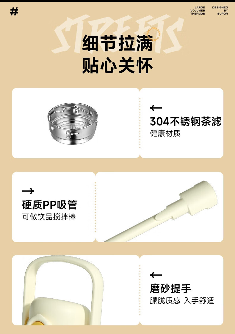 • 商品名称:苏泊尔/SUPOR KCV10AD20 苏泊尔(SUPOR)保温杯大容量男女户外露营便携茶杯316不锈钢手提水杯子KCV10AD20 KCV10AD20