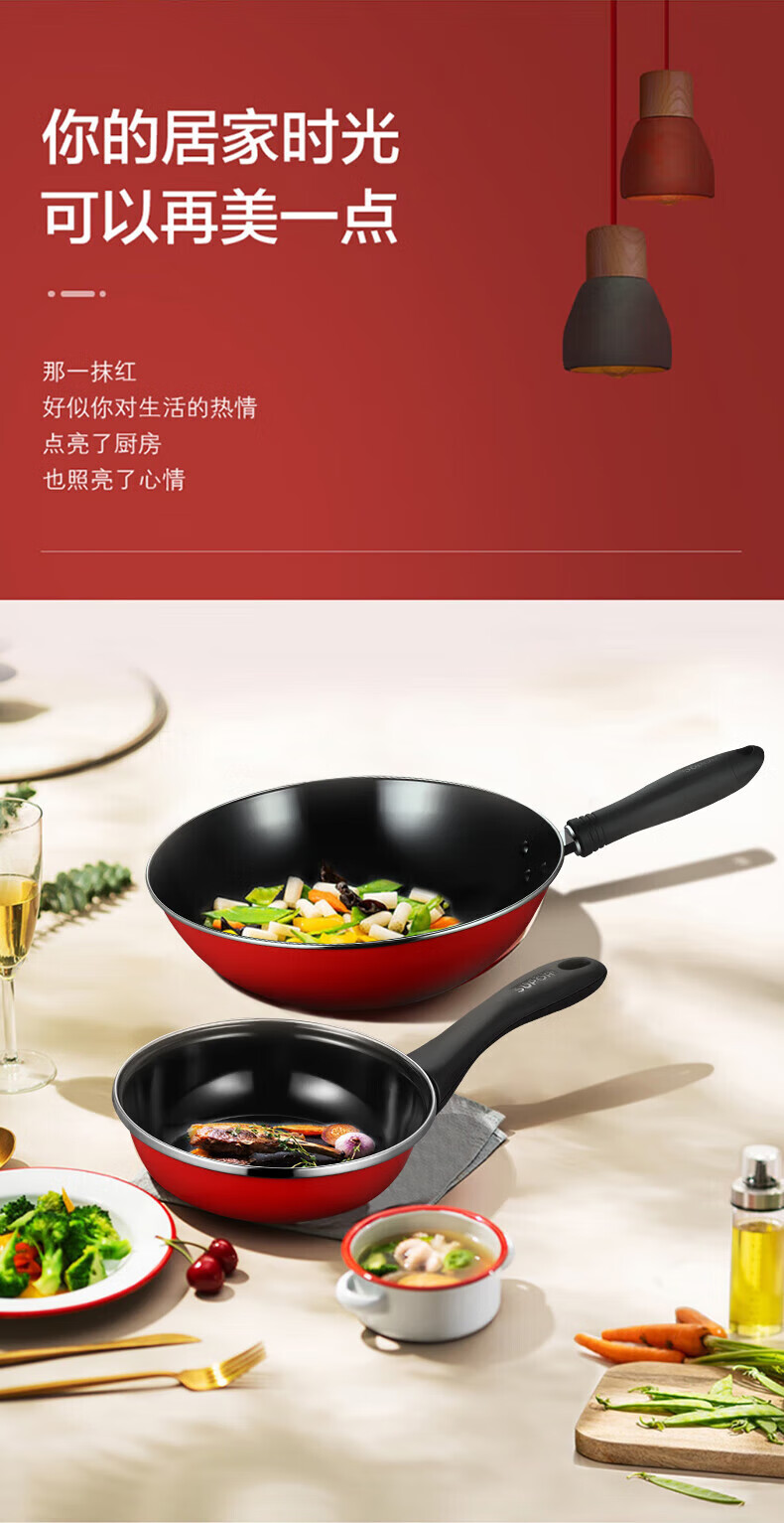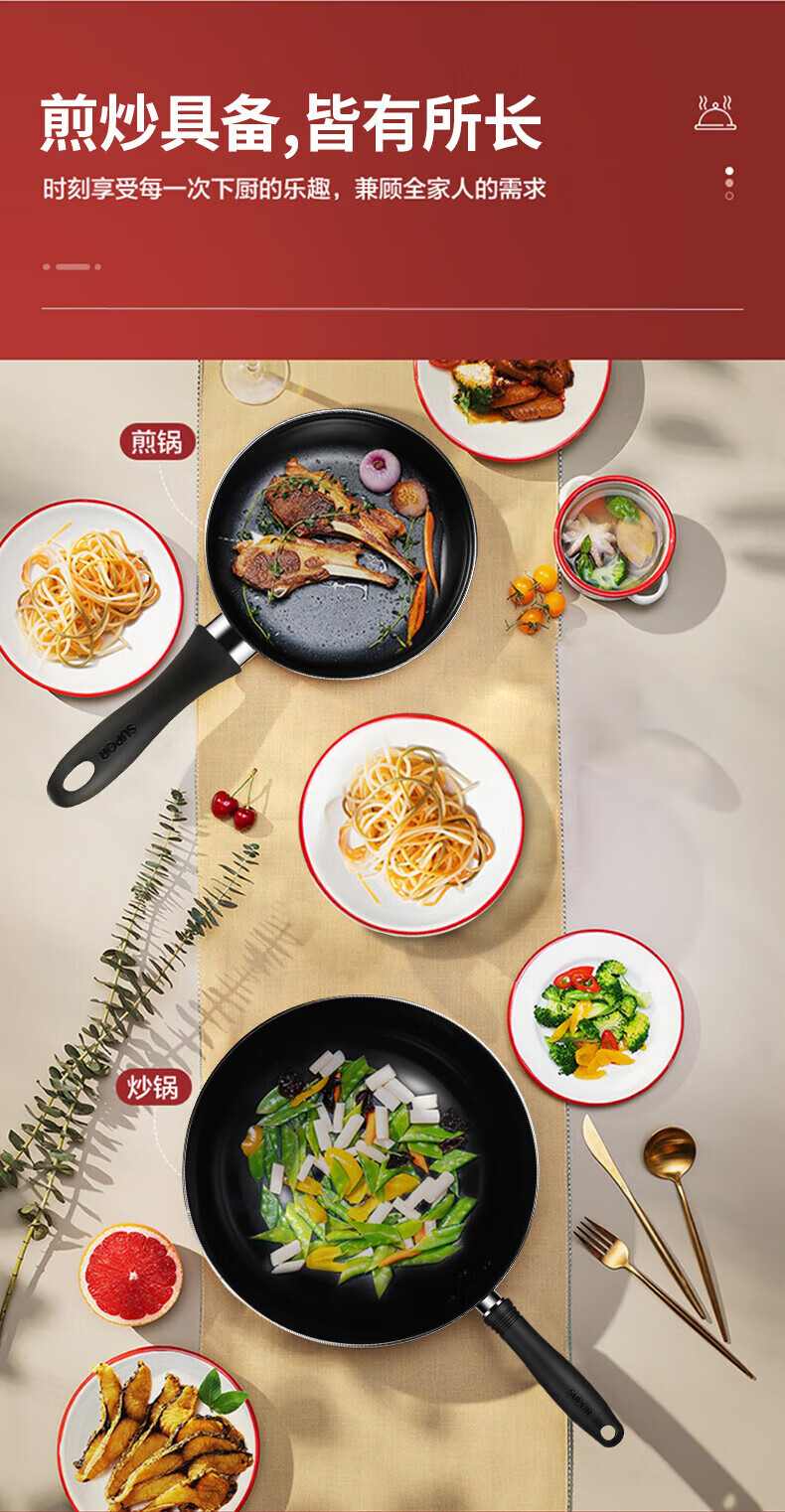 商品名称: 苏泊尔/SUPOR T0934T 苏泊尔(SUPOR)爱家套装锅二件套 炒锅+煎锅 T0934T T0934T